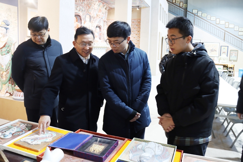 座谈交流结束后,调研组一行实地调研了敦煌彩塑技艺传习所、留学生宿舍和赛会办公场所。组织人事处、教务处、合作发展处、国际交流学院和各二级学院相关负责人参加调研。