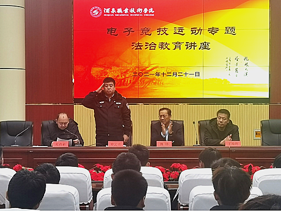 12月21日,学校邀请酒泉市肃州区火车站派出所民警进校园开展了以电子竞技运动为主题的普法专题讲座,学校党委委员、纪委书记、监察专员魏韡出席,应急安稳处及学生代表共计140余人参加。
