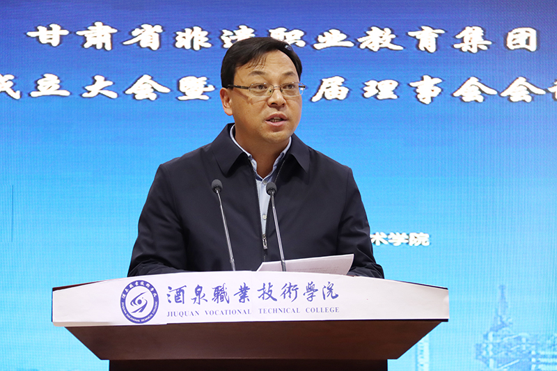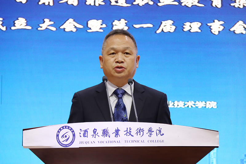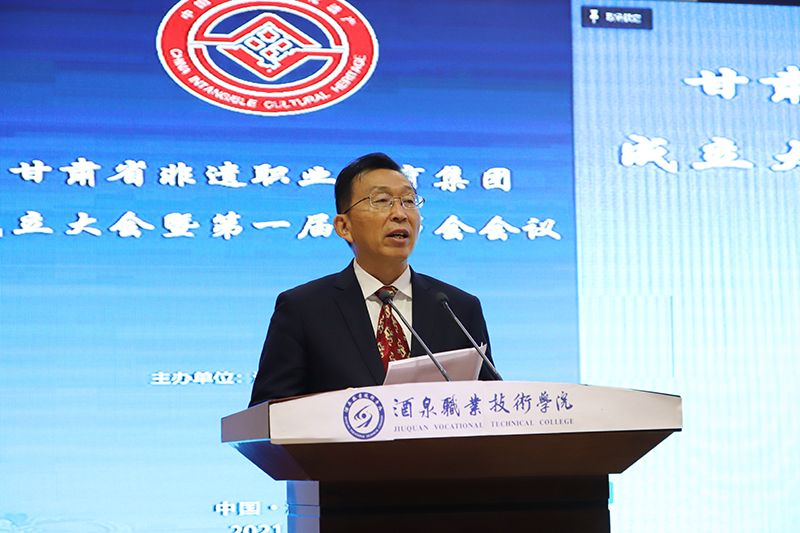 甘肃省非遗职教集团第一届理事长、酒泉职业技术学院党委书记、校长易志军表态发言