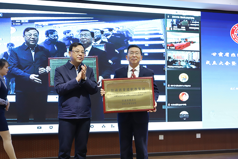 马宗岭与易志军共同为甘肃省非遗职业教育集团授牌
