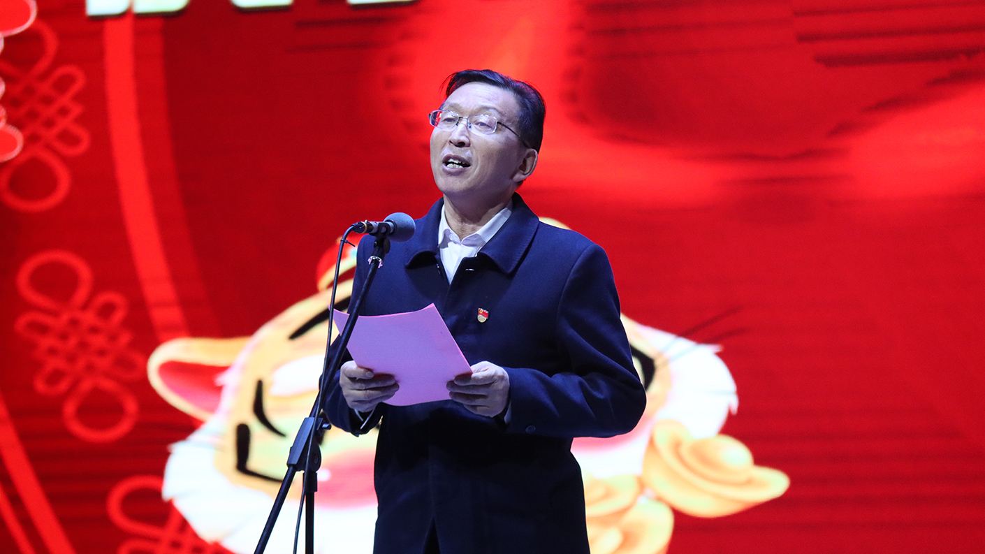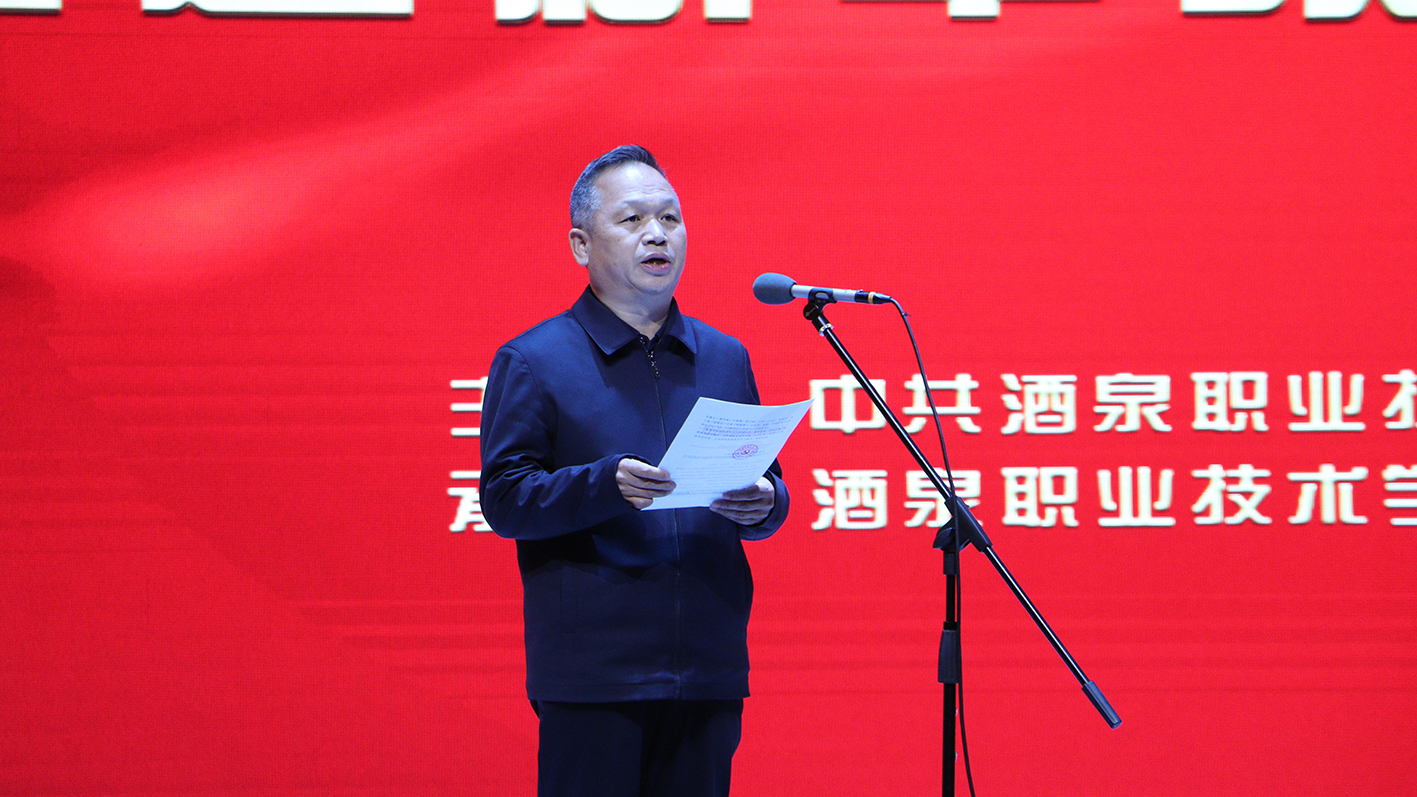 党委书记、校长易志军致新年贺词,他首先代表学校向广大师生致以诚挚的问候和新年的祝福。他指出,2021年是学校践行初心使命、团结奋进、昂扬向上的一年,也是学校聚力攻坚克难、乘势而上、笃定前行的一年。2022年更是实现创建职业技术大学的宏伟目标、服务保障国家大战略、引领推动区域新发展、谱写幸福美好新酒泉贡献酒职力量的奋进之年。