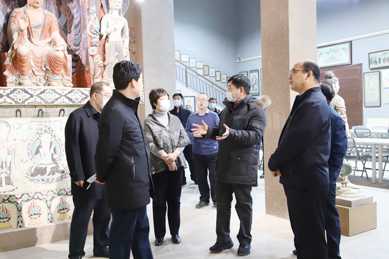 专家组一行在学校党委副书记许军、党委委员、副校长王立智,党委委员、副校长王长荣的陪同下实地查看了格物楼、工科实训中心和敦煌彩塑技艺传习所等场地,详细了解了学校实验实训条件建设情况,并就深化产教融合,推进校企合作的办学模式进行了重点了解和实地调研。
