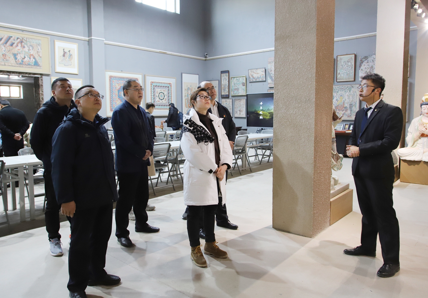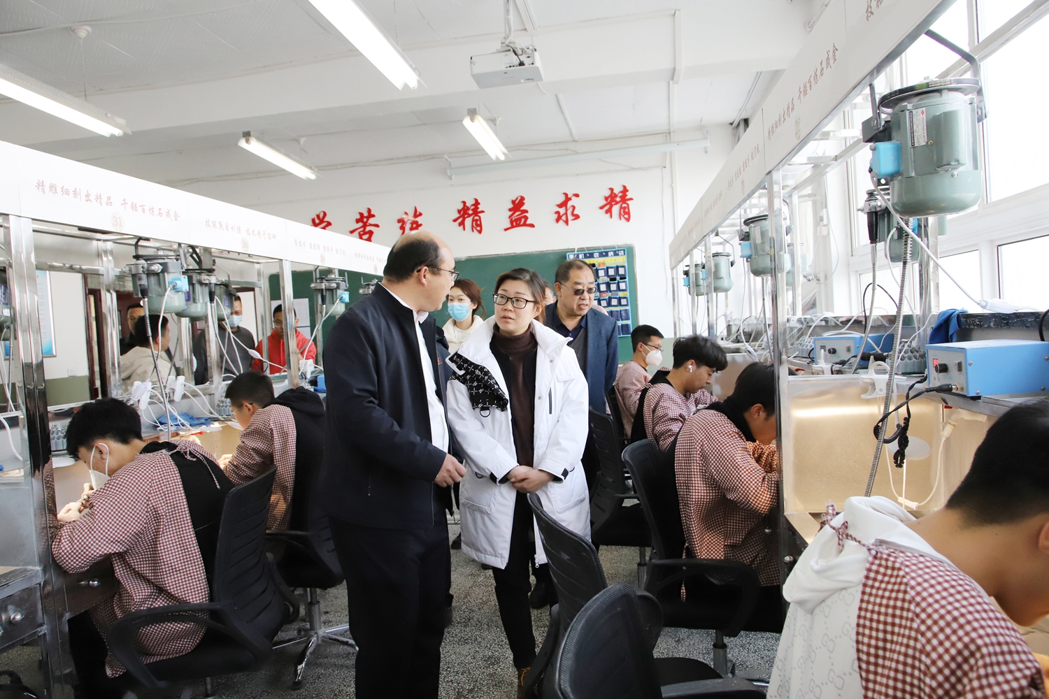 考察组来到夜光杯雕非遗技艺工坊、戈壁石艺画非遗技艺工坊、敦煌彩塑技艺传习所、烹饪酒店实训中心实地查看非遗基地建设情况,并和非遗传承人、学习非遗技艺的学生进行了亲切交谈,详细了解了我校非遗技艺工坊建设、非遗课程开设和非遗保护传承的相关情况。