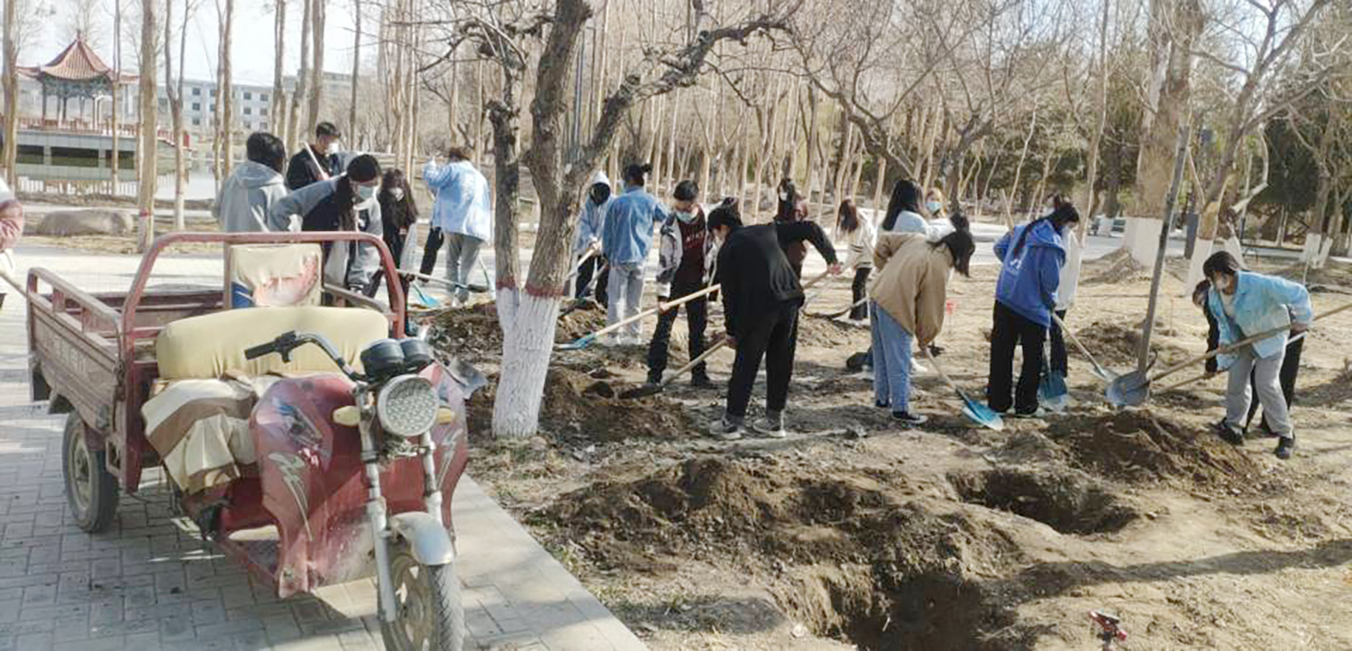 种下一棵树,收获一片绿。广大师生用实际行动践行了“绿水青山就是金山银山”的生态环保理念,弘扬了八步沙林场“六老汉”三代人治沙造林的精神,开展了富有成效的劳动教育,阐释了扎根大漠、荫泽苍生的胡杨精神。把爱绿护绿,美化绿化理念转化为行动自觉,为创建美丽酒职做出了积极贡献。