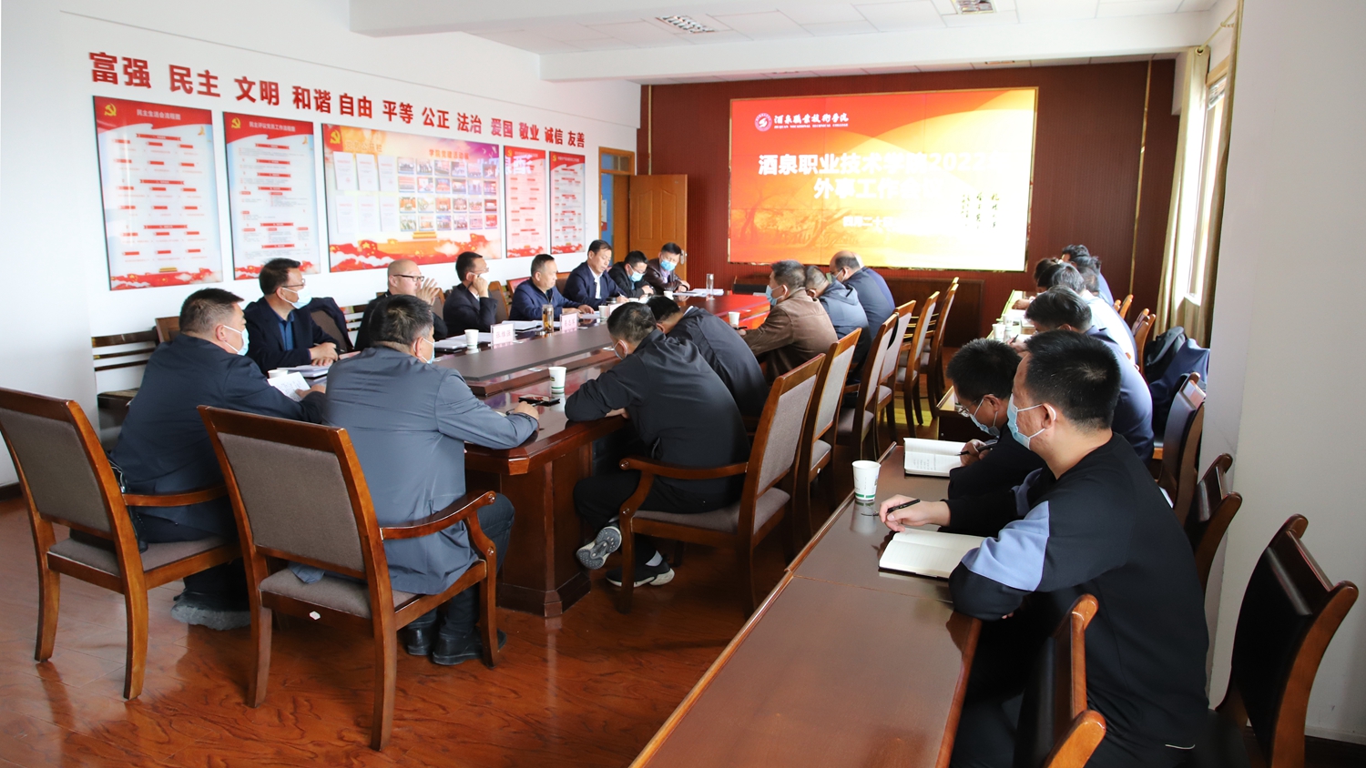 2022年4月20日下午,我校成功召开2022年外事工作会议。学校党委书记、校长易志军、党委委员、副校长王立智出席会议,酒泉市外事办张维强同志应邀出席会议并讲话,校外事工作领导小组全体成员参加了会议。
