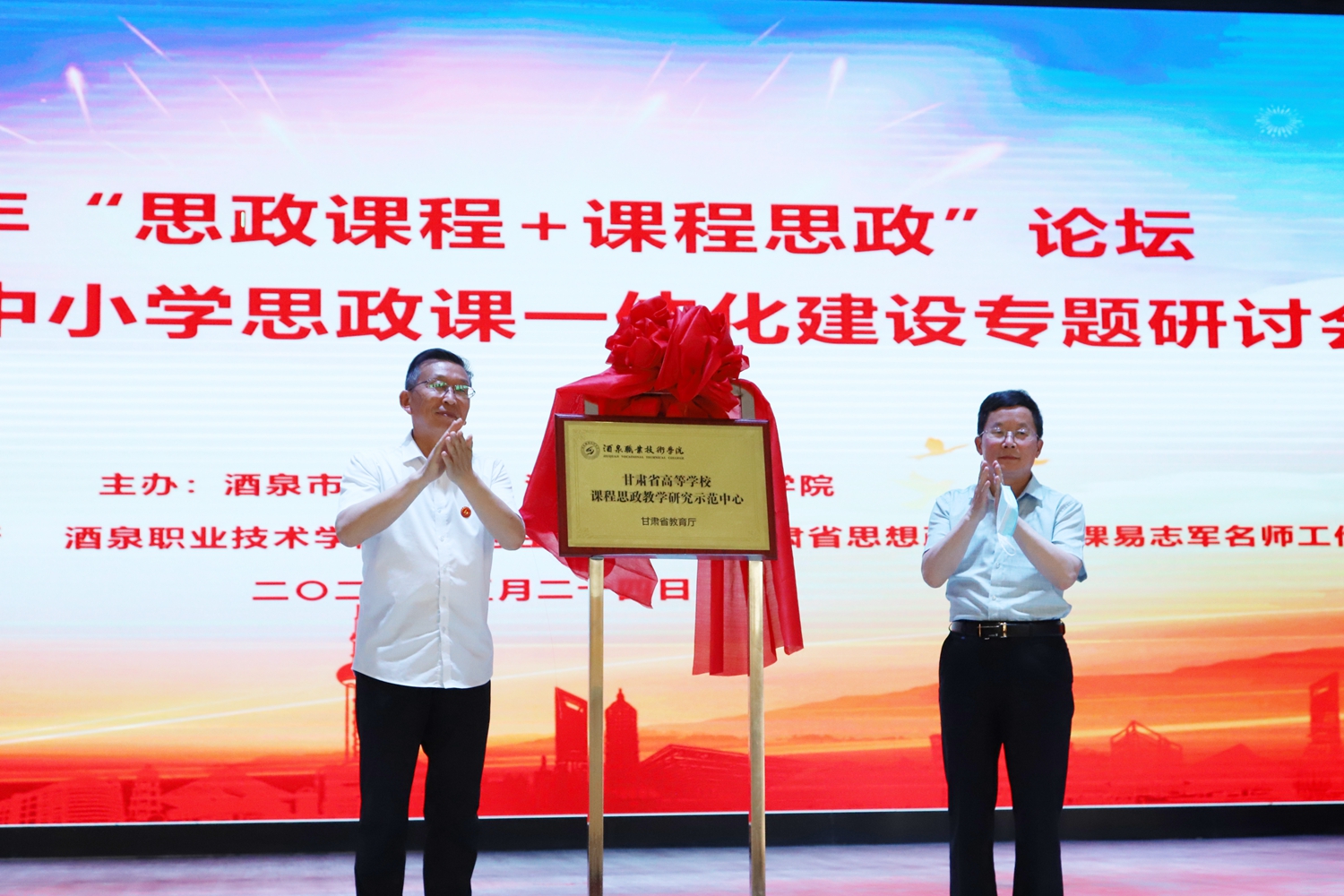 酒泉职业技术学院党委书记、校长易志军致辞,并与陶英江共同为“甘肃省高校课程思政教学研究示范中心”进行揭牌。