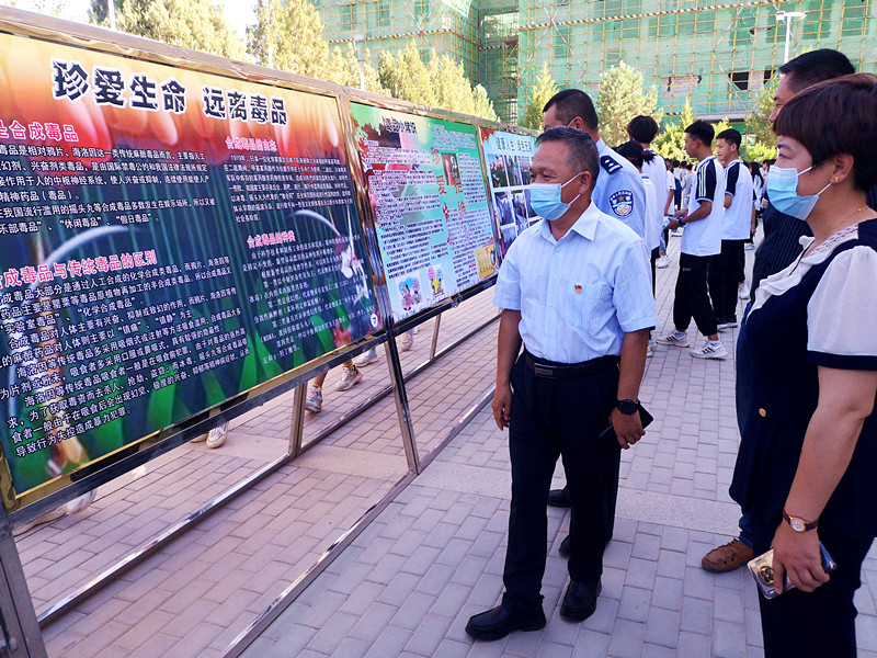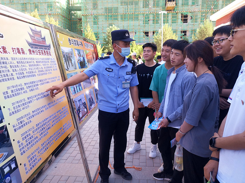 为深入贯彻习近平新时代法治思想,持续推进学校“八五”普法宣传教育工作走深走实,进一步提升学生法治意识和法治素养,在6.26国际禁毒日来临之际,学校于6月14日下午,联合东南街街道解放路社区、酒泉市肃州区禁毒办、肃州区司法局、酒泉市公安局肃州分局火车站派出所等属地多方,在学校成功举办以“绿色人生,健康无毒”为主题的禁毒普法宣传活动。学校党委委员、副校长王立智,党委委员、宣传统战部部长王金明,应急安稳处及各二级学院师生代表共计1600余人参加。