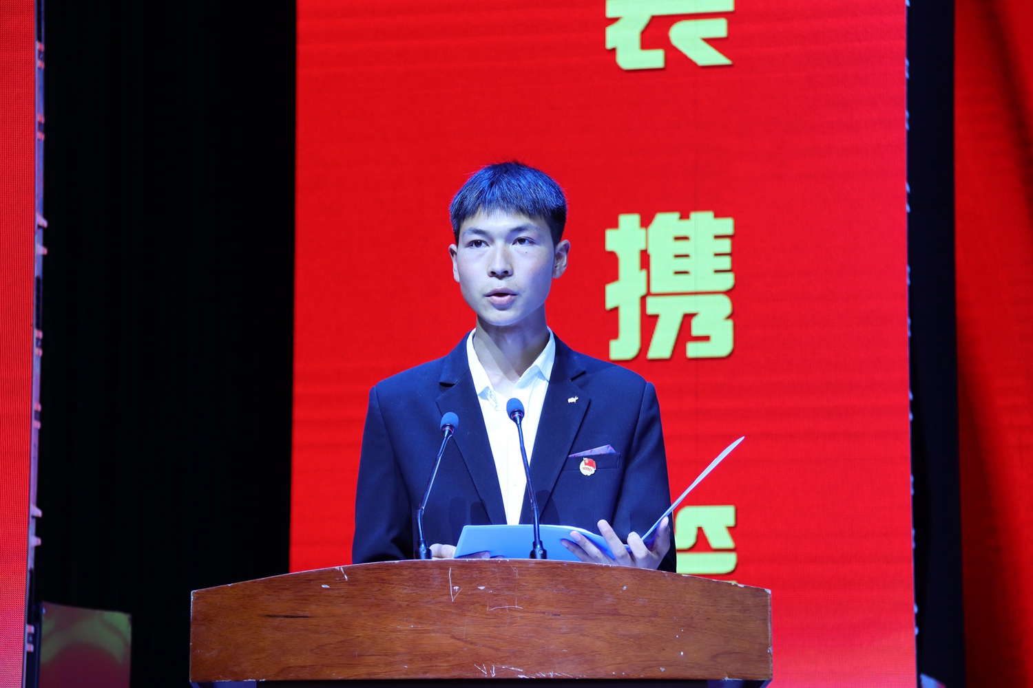 参军入伍大学生代表马阳阳同学以当代青年的“最强音”向全体大学生发起了“响应祖国召唤,响应领袖号召,携笔从戎,绽放青春”的入伍倡议。