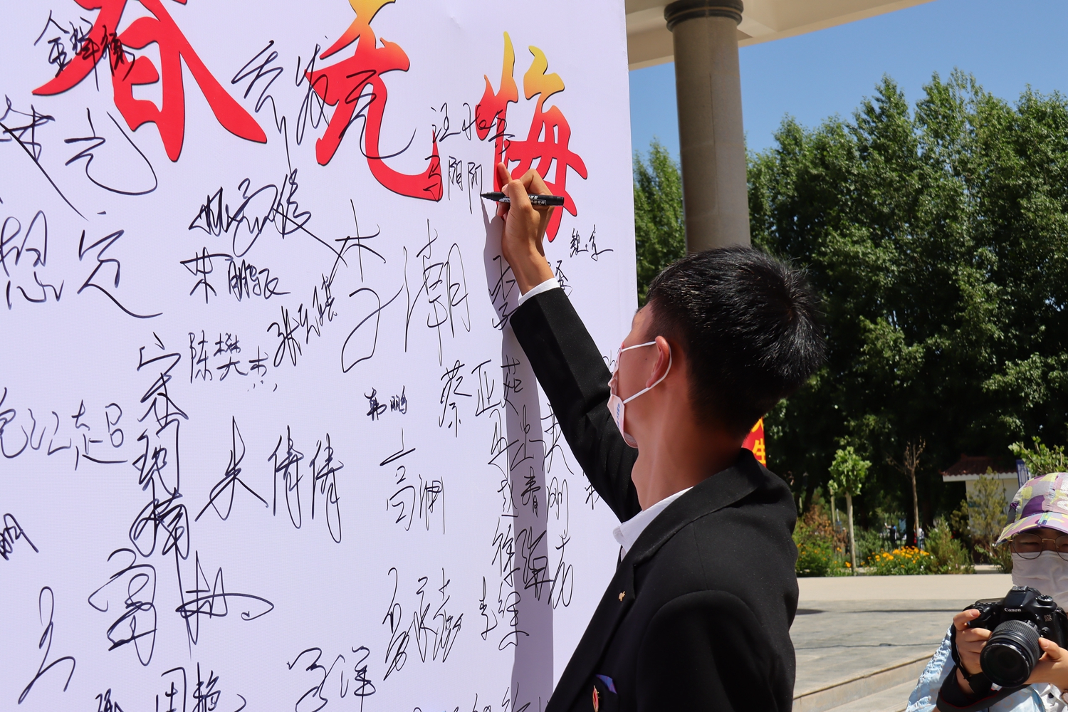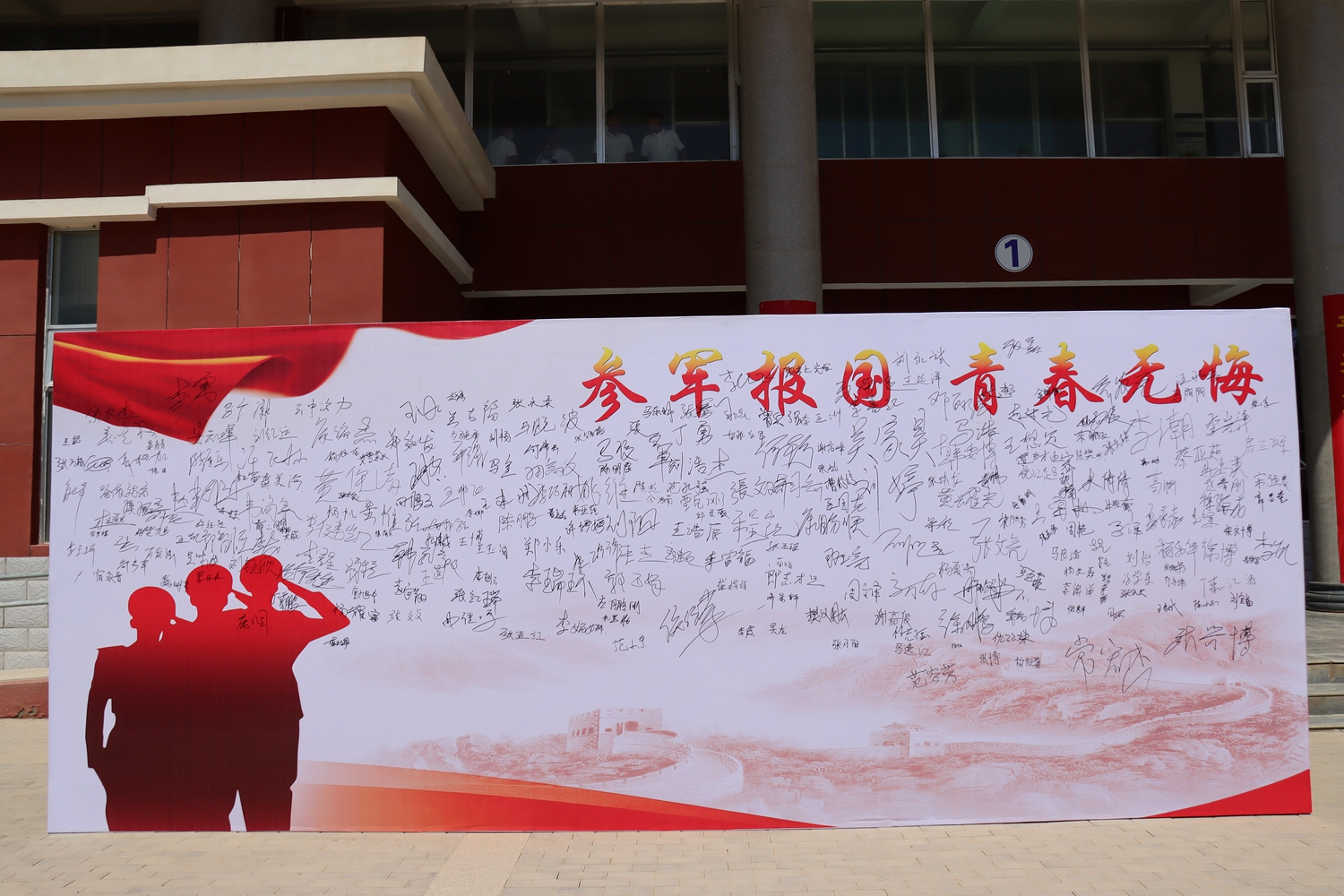 仪式后,学生纷纷前往活动中心东门参加“参军报国·青春无悔”大学生集体签名活动,并在签名墙郑重签名。(信息员:学工部 李波)