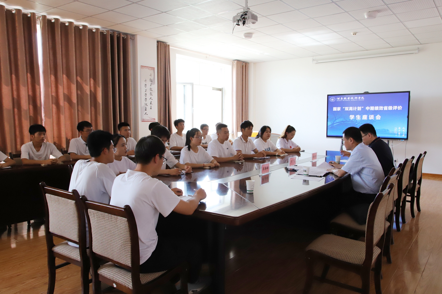 专家组对照学校“双高计划”建设方案、任务书及自评报告等材料,现场核查了学校“双高计划”中期绩效数据佐证材料并进行了现场提问,学校相关“双高”专项建设工作组成员进行了答疑。