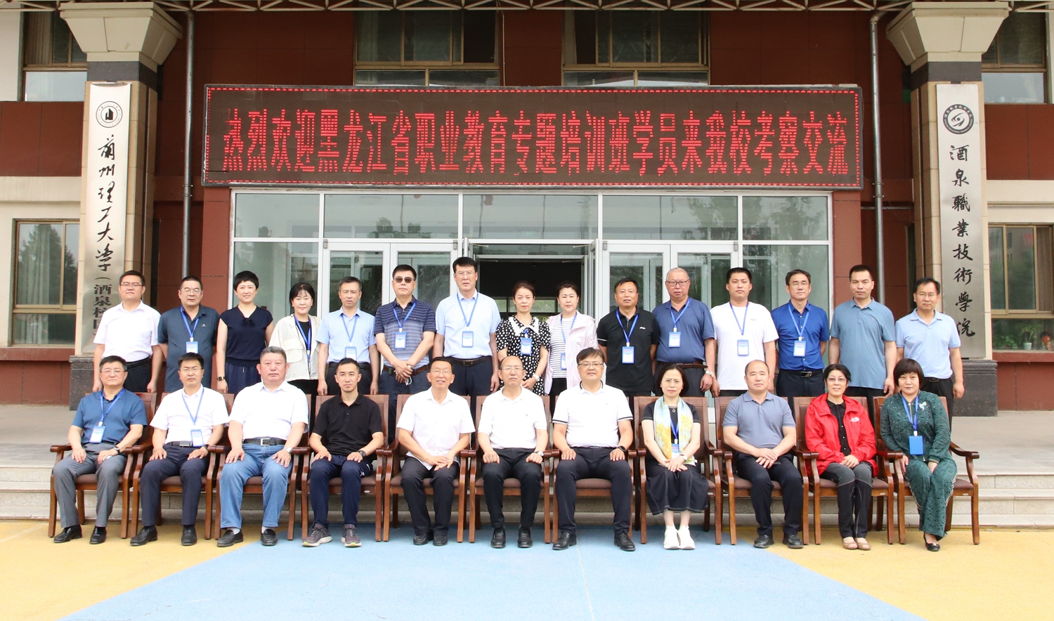7月10日,由黑龙江省教育厅二级巡视员丁哲学、牡丹江市教育局党组书记、局长张大伟,七台河市教育局党组书记、局长由胜坤,鹤岗市教育局党组书记、局长付延海,绥化市教育局党组书记、局长霍凤国等组成的黑龙江全省市(地)教育局局长或分管副局长和职教管理者专题培训班一行 22 名学员在市教育局副局长邹志平的陪同下来校考察交流。