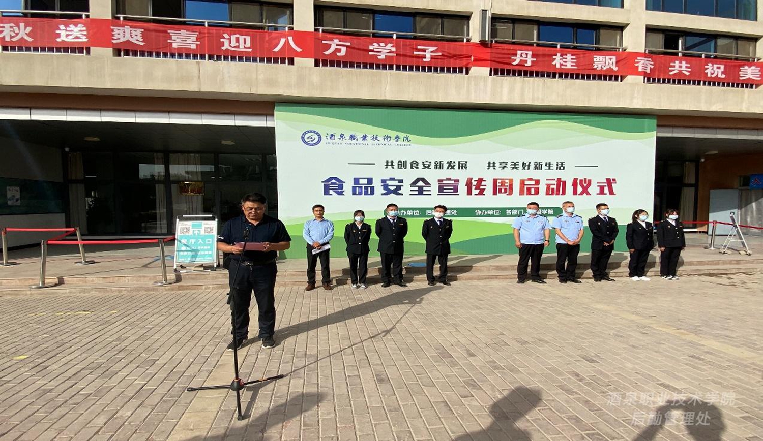 活动上宣读了《酒泉职业技术学院2022年全省食品安全宣传周活动方案》,动员全校师生员工关心、支持和参与食品安全工作,增强师生对食品安全工作的参与意识,普及食品安全科学知识,促进广大师生树立健康饮食理念,扎实推进我校食品安全工作的实施。