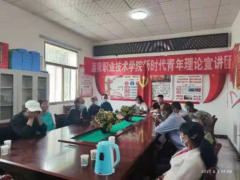 2022年7月至9月,为深入学习宣传贯彻党的十九届六中全会精神和甘肃省第十四次党代会精神,由甘肃省易志军名师工作室、马克思主义学院指导的酒泉职业技术学院新时代青年理论宣讲团深入乡村、社区、基层一线以“五微五进”宣传党的政策,服务乡村振兴。