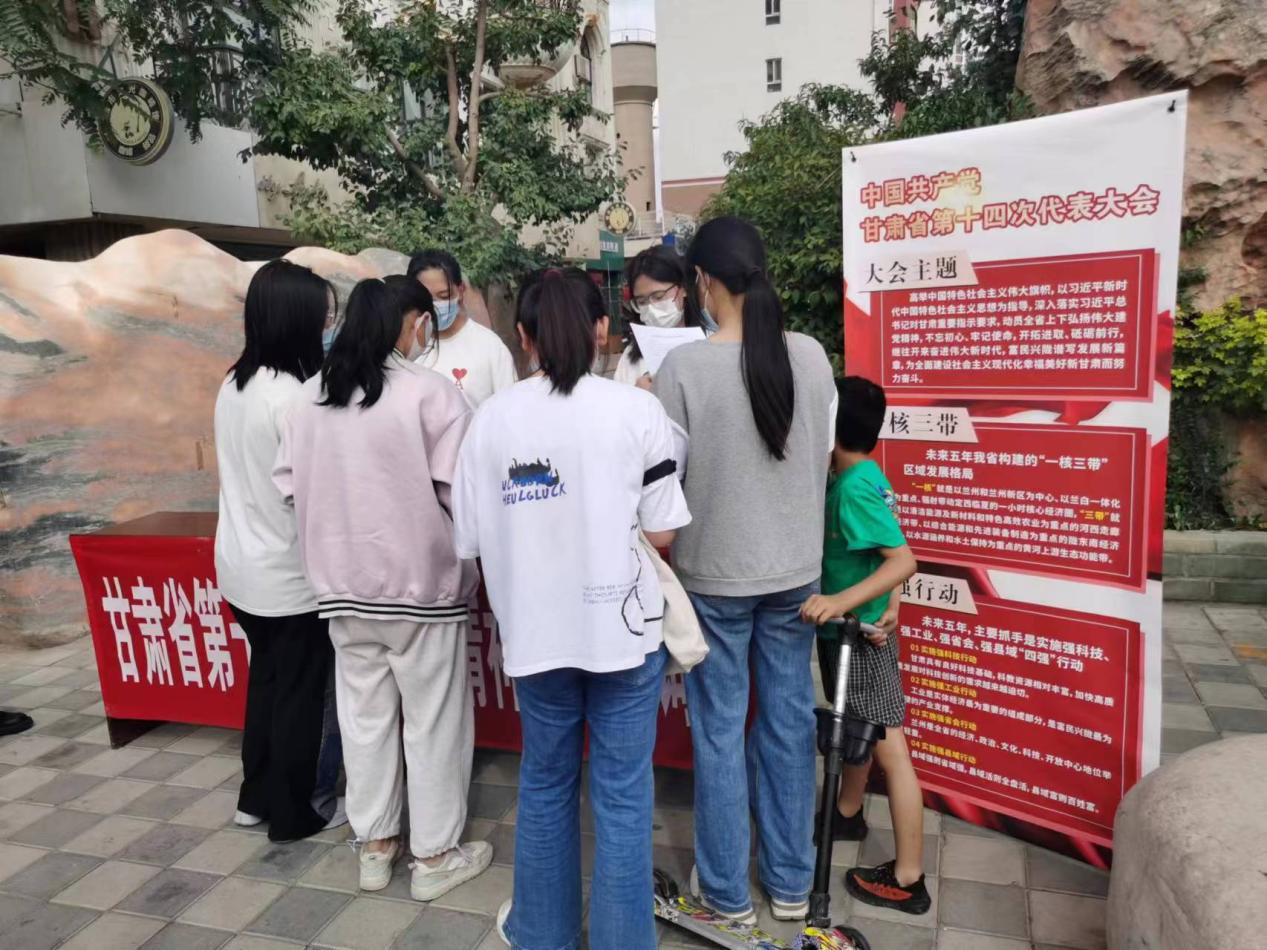 微宣传进社区,国之大者鼓人心。宣讲团提前编印了宣传材料,制作了宣传展板,分组在人民广场、社区、村社、等人员密集处架设了宣传咨询台,向路过群众发放党的十九届六中全会精神和甘肃省第十四次党代会精神宣传资料,介绍展板内容,讲解精神要义。同时,宣讲团走进了酒泉市富康路社区为社区的青少年开展了一场别具新意的主题团日活动,宣讲员从近十年青少年身边的发展变化讲起,讲到了全国的行政区域设置,讲到了甘肃在全国经济版图中的位次和差距,鼓励青少年奋发图强,为建设幸福美好新甘肃而不懈努力。