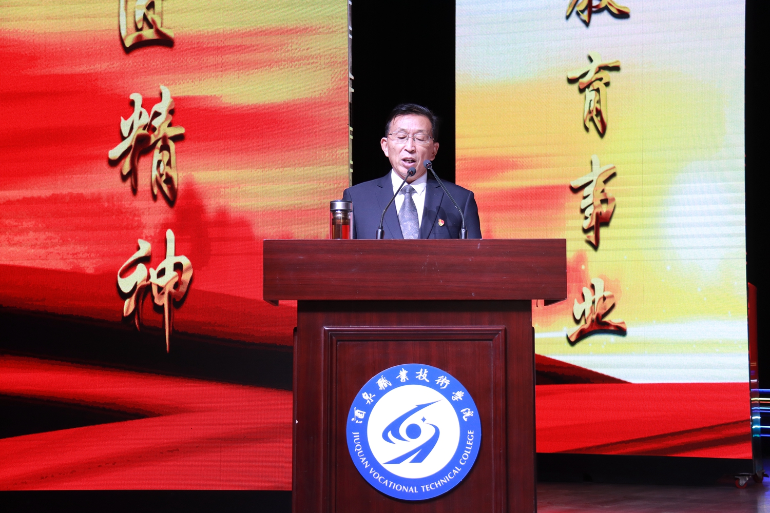 此次报告会设立主会场和分会场,采用线上+线下相结合的方式进行。校党委委员、中层干部及师生代表在主会场聆听报告。酒泉卫生学校、酒泉工贸中专、继续教育学院师生在分会场观看了报告会直播,居家教职员工通过腾讯会议在线聆听了报告。