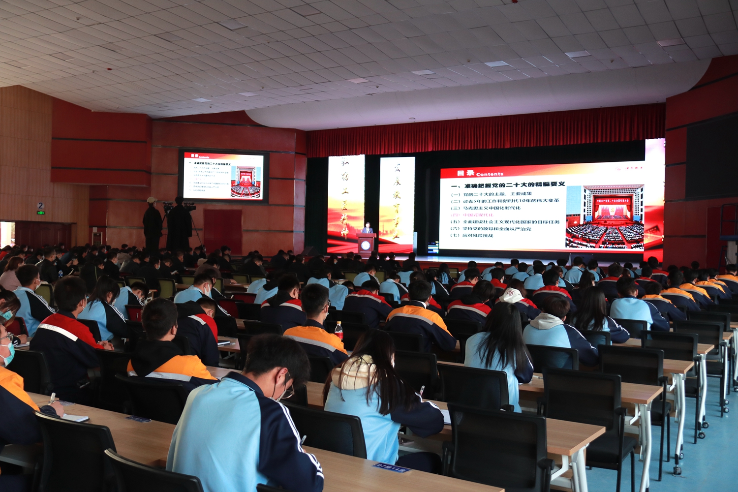 易志军教授结合自身的学习感悟和学校实际工作,从“准确把握党的二十大的精髓要义”“找准酒职在中国式职教现代化进程中的发展方位”“凝聚在中国式职教现代化进程中的奋斗力量”三个方面作了重点宣讲,明确了学校在职业教育现代化进程中强弱项、固根基、固底板的发展方位,回答了“怎么干”“谁来干”的问题。并与大家分享了学校的主题文化、核心理念、基本理念、办学理念、治校理念、学校宣言等内容,明确了依靠校园文化建设凝聚共识、统一思想的问题。整场宣讲报告主题鲜明、视野开阔,内容丰富、深入浅出,既有政治高度,又有理论深度,既有实践指导,又有情感共鸣,对广大师生员工全面学习、全面把握、全面落实党的二十大精神起到重要的推动作用。