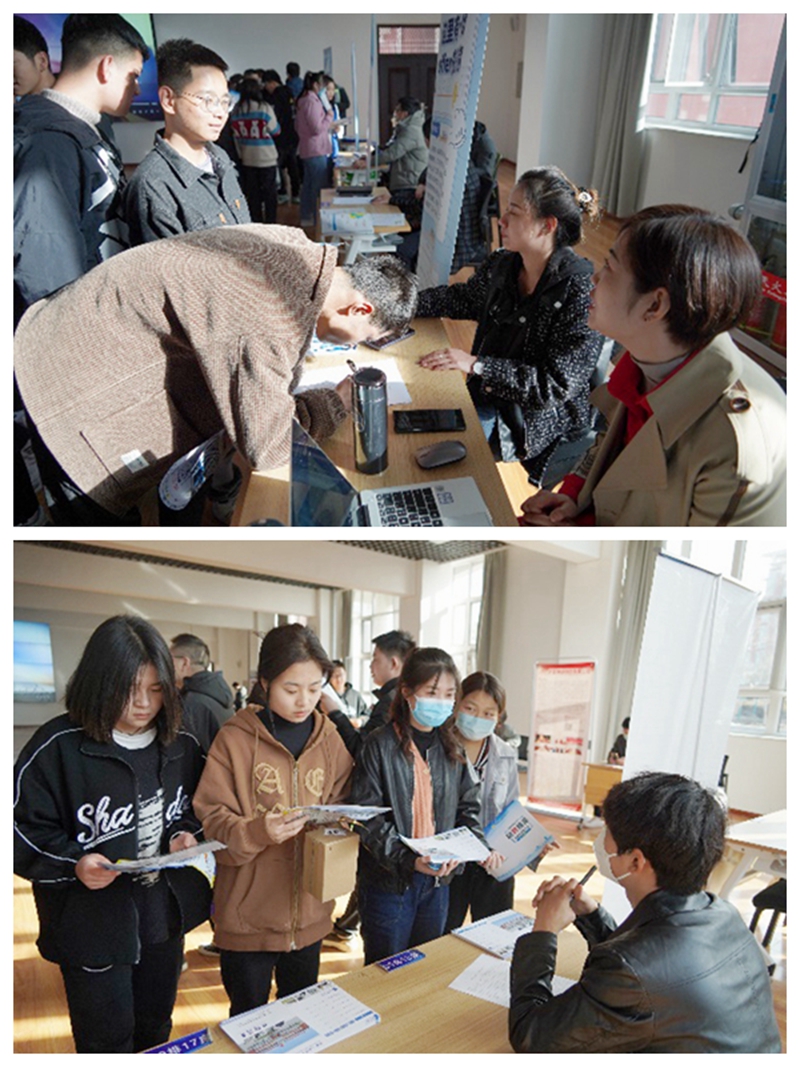 学校党委委员、副校长王立智和新疆哈密市委组织部副部长、人社局党组副书记、局长钟锐钧等领导查看了招聘会举办情况,进一步了解了企业用工要求、学生诉求等情况。