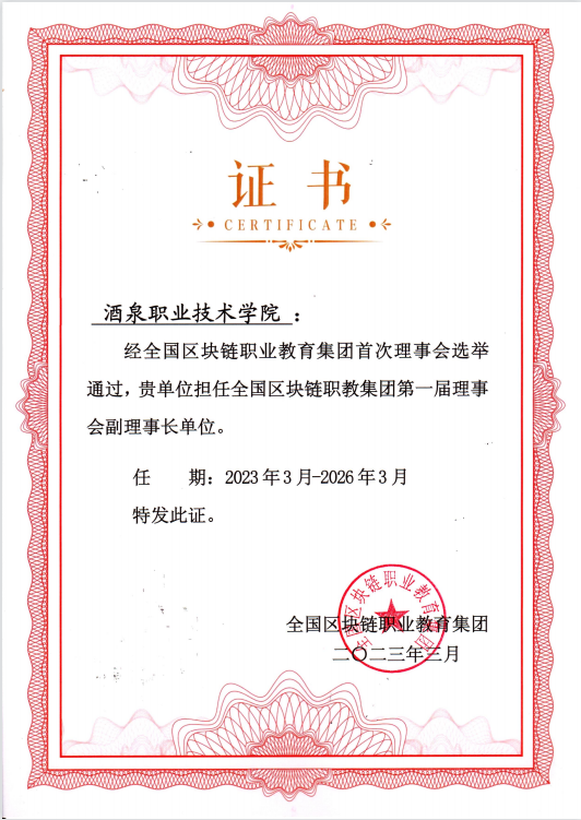 酒泉职业技术学院入选全国区块链职业教育集团副理事长单位