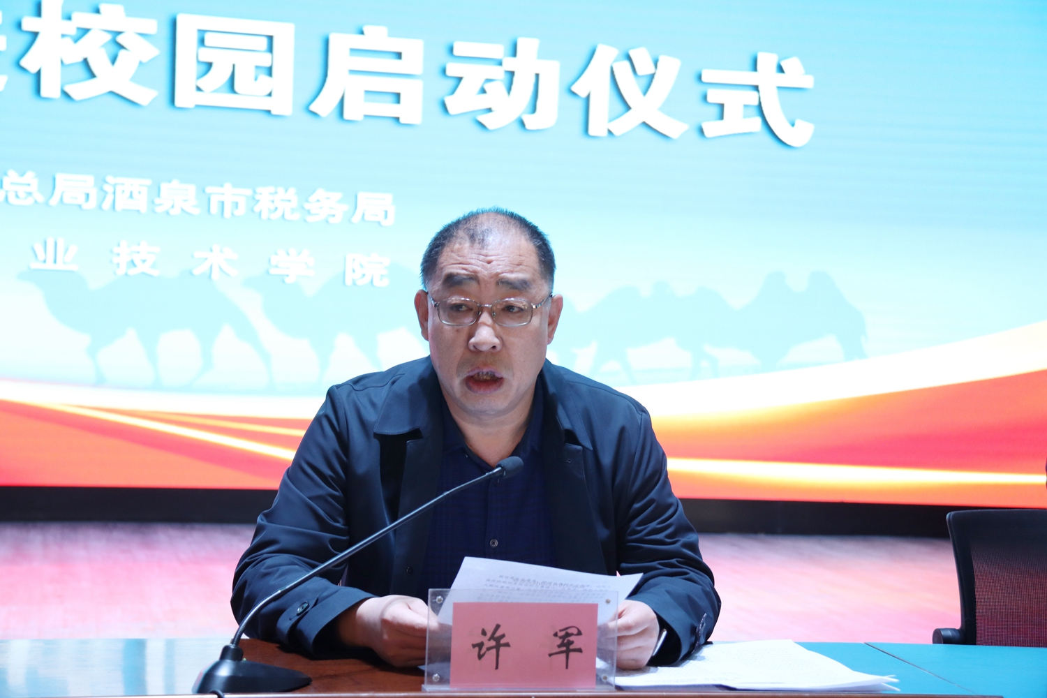 酒泉市税务局党委书记、局长李震宇,酒泉职业技术学院党委副书记许军分别致辞。