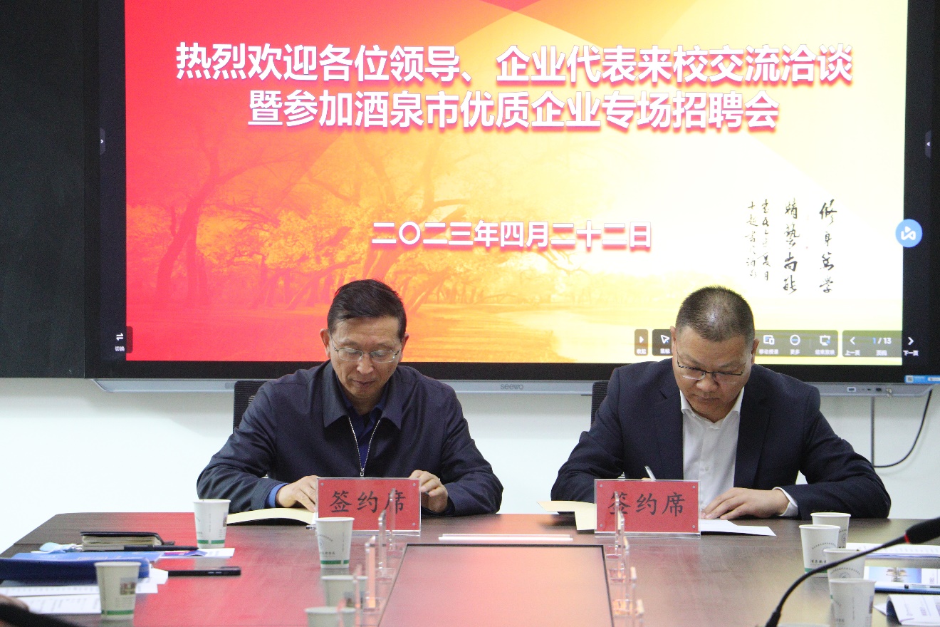 要闻快递 > 正文为全力支持酒泉地方经济建设,提高我校毕业生就业质量,实现优质就业,结合“三抓三促”行动,4月22日,由酒泉市教育局、工信局、人社局、酒泉经开区管委会和我校共同主办、酒泉市人才交流开发服务中心和我校承办的酒泉职业技术学院2023年春季校园双选会——校政企合作座谈会和酒泉市优质企业专场招聘会分别在学校格物楼和体育馆举行。