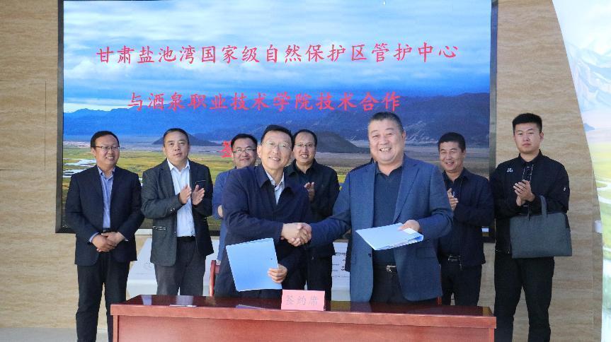 随后,酒泉职业技术学院党委书记、校长易志军代表酒泉职业技术学院和甘肃盐池湾国家级自然保护区管护中心签订《共建人才培养基地协议书》并揭牌。
