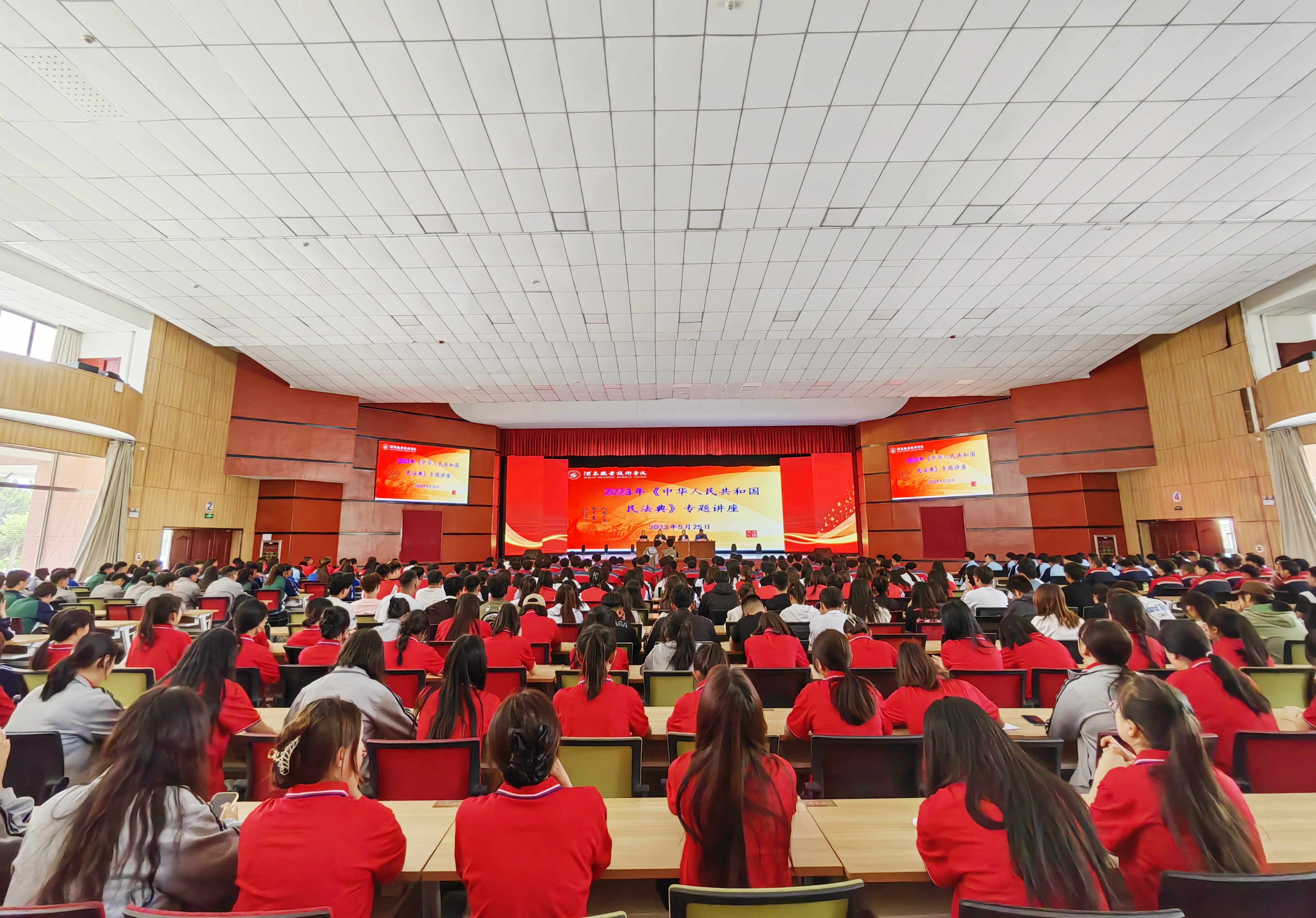 为全面贯彻落实党的二十大精神,深入学习宣传习近平法治思想,充分认识颁布实施民法典重大意义,积极推动民法典贯彻落实和学校普法依法治理工作高质量开展,切实增强全校师生法律意识和法治观念。5月25日下午,学校以第三个民法典宣传月为契机,邀请酒泉阳关律师事务所陆华律师开展《中华人民共和国民法典》专题讲座,各部门、各学院师生代表共计500余人参加。
