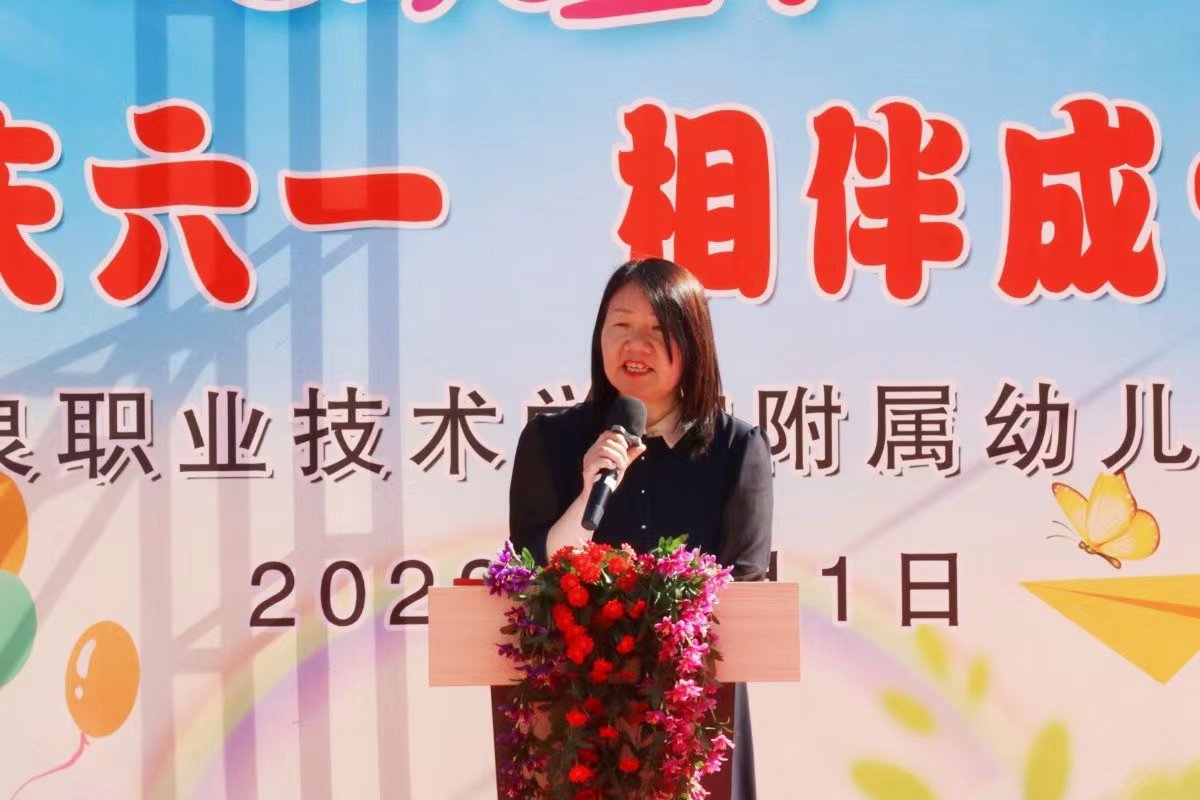 酒泉职业技术学院党委书记、校长易志军,教育与艺术学院副院长张冬琴、于芳出席本次活动。附属幼儿园园长张彩霞做庆“六一”献词,易志军代表酒泉职业技术学院党委致辞,为孩子们送来节日的祝福并为每位孩子带来节日的礼物。精彩的致辞和暖心的礼物对附属幼儿园的每位幼儿是一种莫大的鼓励,对教职工更是一种无形的鞭策和激励。为了让孩子在充满仪式感的活动中获得荣誉感和自信心,各班评选出了班级中的智慧宝宝、劳动小能手、运动小健将、阳光宝贝等荣誉称号,各班幼儿代表上台领奖,出席活动的领导向各班幼儿代表颁发了奖状。