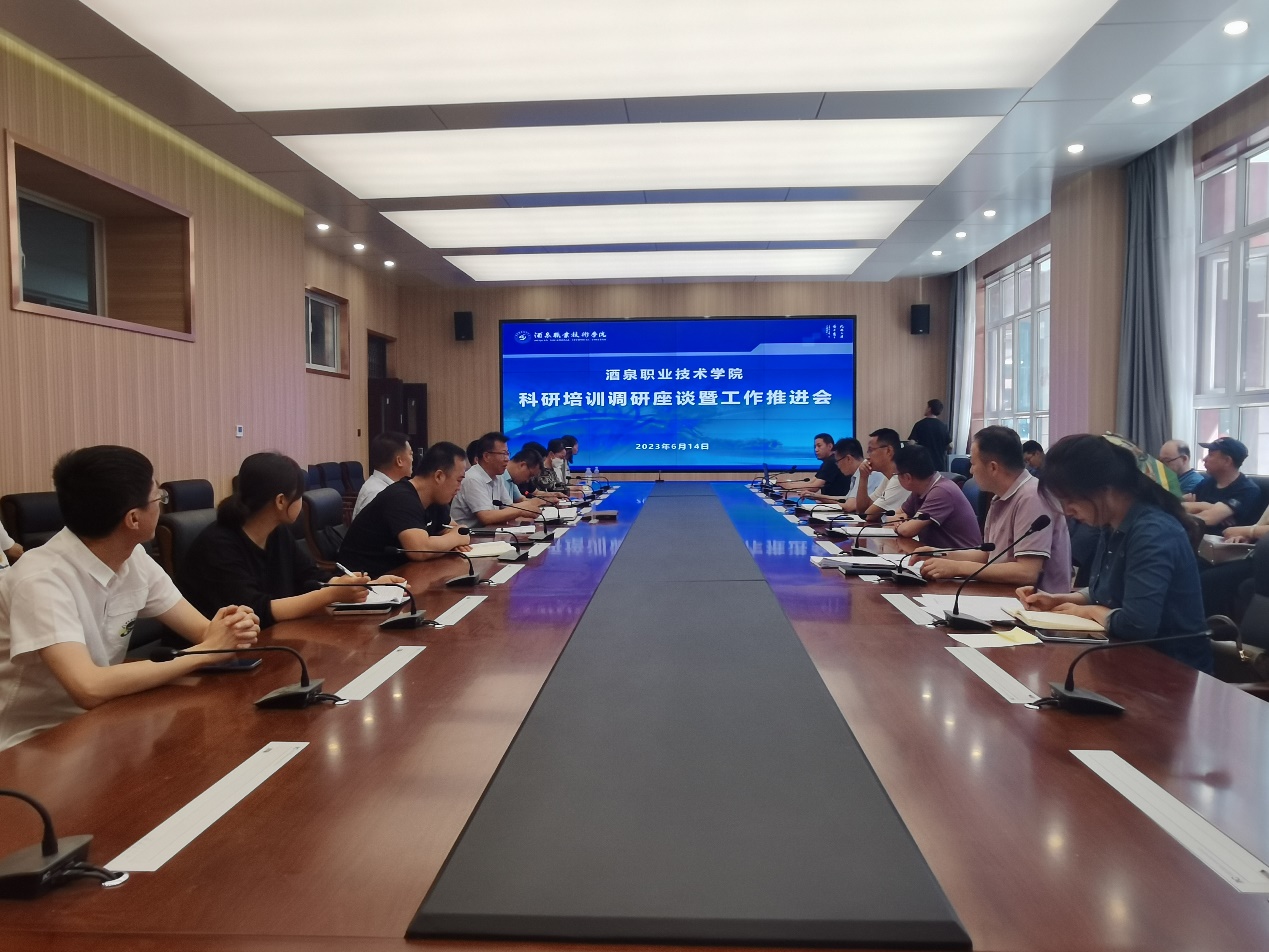 要闻快递 > 正文为进一步推动学习贯彻习近平新时代中国特色社会主义思想主题教育走深走实,切实改进科研、培训工作作风,完善科研、培训工作管理机制体制,解决广大师生“急难愁盼”问题,结合学校主题教育调研要求及“三抓三促”行动部署,科研处、培训处于6月9日、6月12日、6月14日分批次、分阶段分别组织15个二级学院(部门)在弘毅楼学术讲堂D召开了科研、培训调研座谈及工作推进会。学校党委委员、副校长王金明主持会议,各二级学院(部门)主要负责人、分管科研、培训负责人、科研干事及无课教师参加了此次调研座谈会。