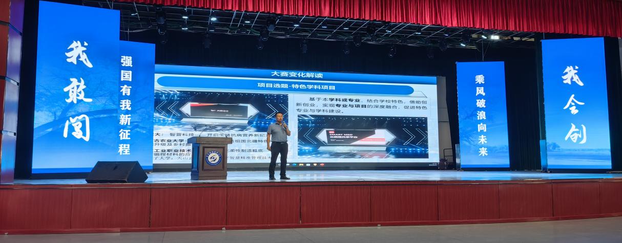 会上,王长荣副校长做了动员部署讲话。希望老师和同学们高度重视此项大赛,积极参与到大赛中来,要以赛促教,探索人才培养新途径,切实提高人才培养的质量;要以赛促学,培养创新创业生力军,激励广大青年成长为有为人才;要以赛促创,搭建产教融合新平台,推动高质量创业就业新局面所学专业知识转化为解决实际问题的能力,不断增强服务社会的本领。以“互联网+"比赛为抓手激发全院师生的创新创业的道路,有助于提高我校师生的创新能力,推动产学研用紧密结合,进一步深化我校应用型人才培养工作的探索。