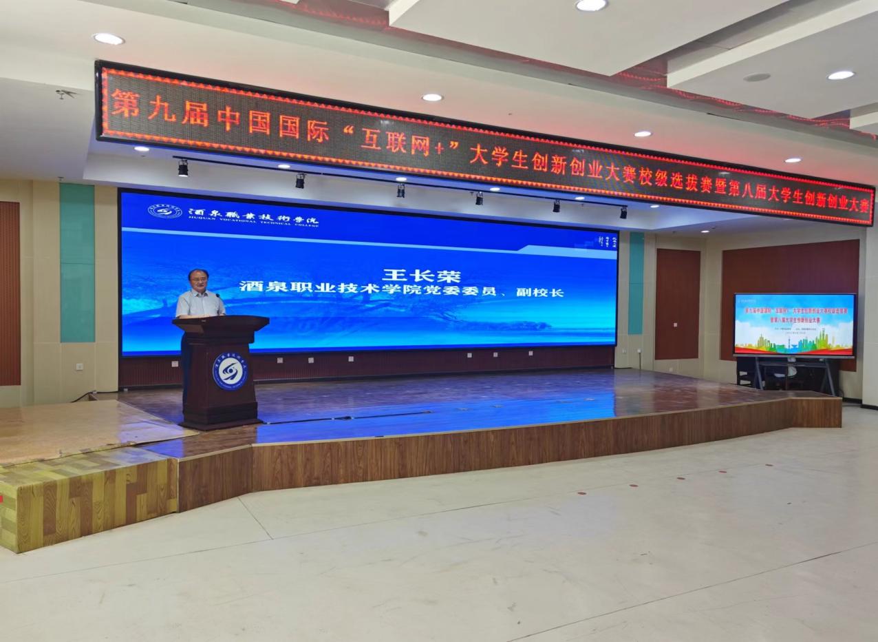 要闻快递 > 正文6月29日下午,在学校图书馆四楼会议室举行了第九届“互联网+”大学生创新创业大赛校级选拔赛暨学校第八届大学生创新创业大赛。学校党委书记、校长易志军出席大赛并为获奖选手及获奖项目指导老师颁奖,学校党委委员、副校长王长荣出席大赛并致辞,校赛项目团队成员及指导老师、专家评委、教务处、各二级学院负责人及主管双创副院长、双创专干等共计200余人参加本次活动。