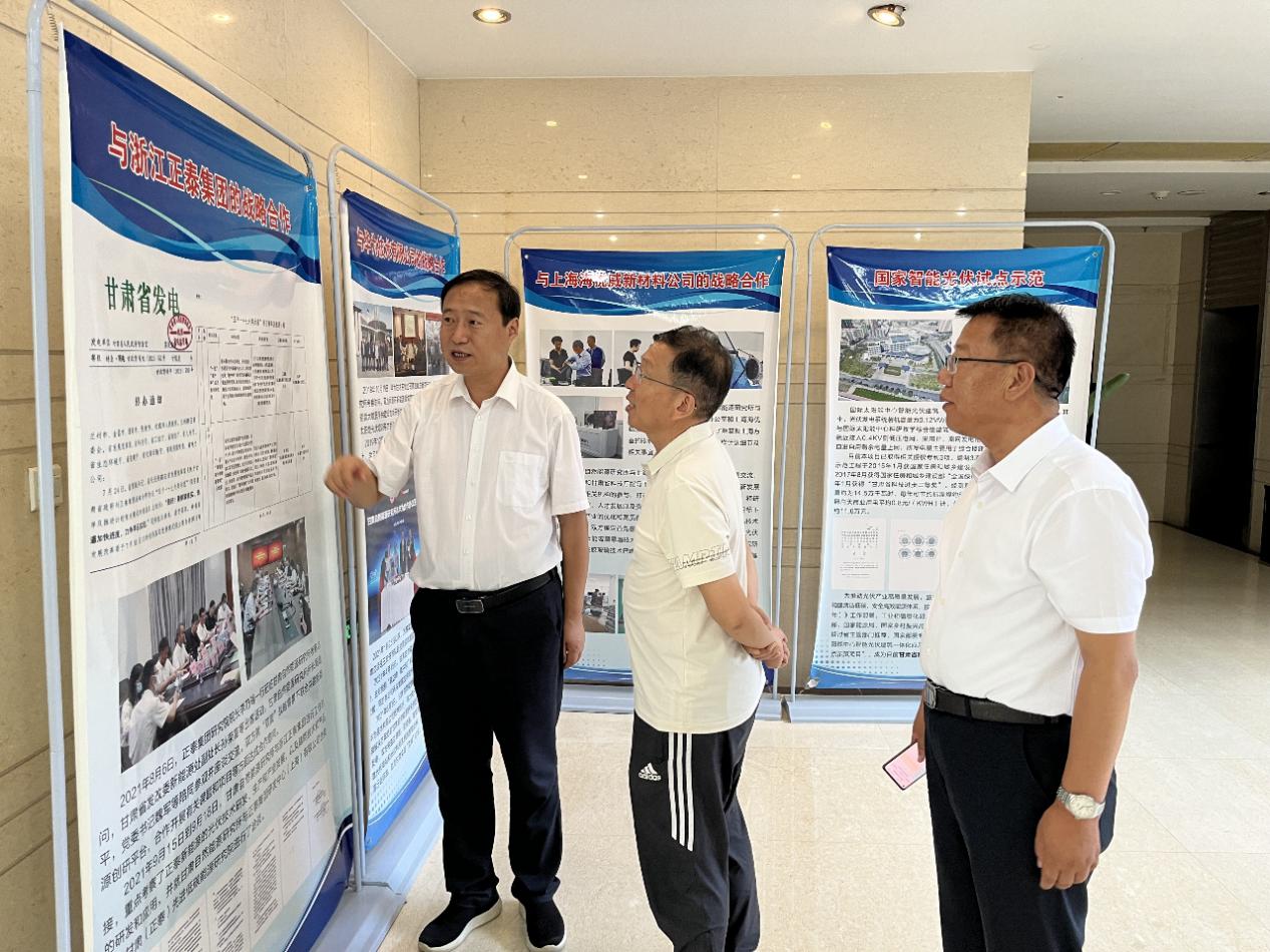 7月24号下午,学校党委书记、校长易志军,党委委员、副校长王金明赴甘肃自然能源研究所考察交流,与甘肃自然能源研究所所长周剑平、办公室主任韩姣莉、研究与开发处处长王亚刚等进行了深入交谈。