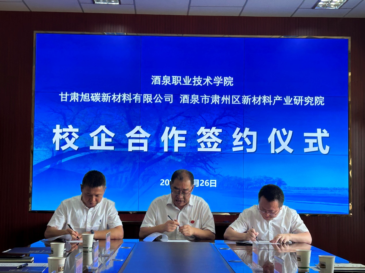 座谈会后,酒泉职业技术学院、甘肃旭碳新材料有限公司、酒泉市肃州区新材料产业研究院三方签订了校企合作框架协议。(信息员:新能源研究院 马超)