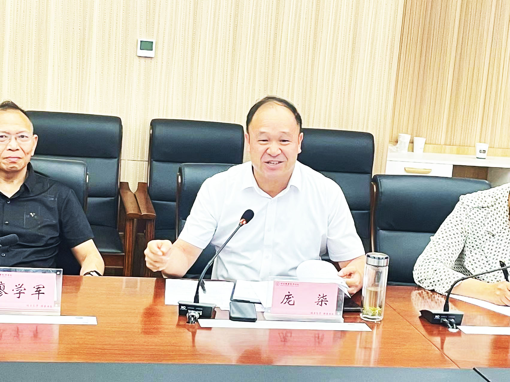 参观完学校办学硬件设施后,双方在酒泉职业技术学院弘毅楼无纸化会议室进行了座谈交流。学校党委书记、校长易志军立足酒泉市现有新能源产业链发展现状及学校在新能源装备研发、工艺改进、产教融合等研究情况,就下一步在新能源风光电储能领域的合作做了表态和表达了渴望。