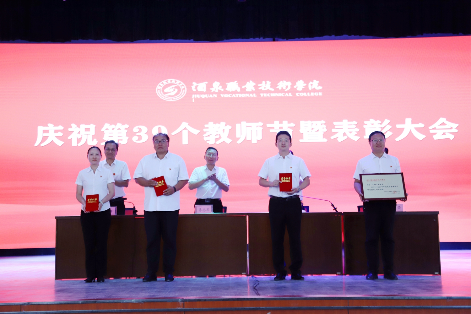 易志军致辞勉励广大教师要坚定理想信念,坚守初心使命;要涵养师德师风,秉承高尚品格;要提升育人能力,立足科技前沿;要常怀仁爱之心,践行仁爱之道。广大教师要继续坚守立德树人、教书育人的初心使命,凝心聚力、攻坚克难,以更加昂扬的奋斗姿态、更加进取的拼搏精神、更加强烈的责任担当,肩负起时代赋予的使命与责任,踏上新征程,展望新目标,奋勇拼搏、乘风破浪,共同谱写酒泉职业技术学院跨越发展的新篇章。
