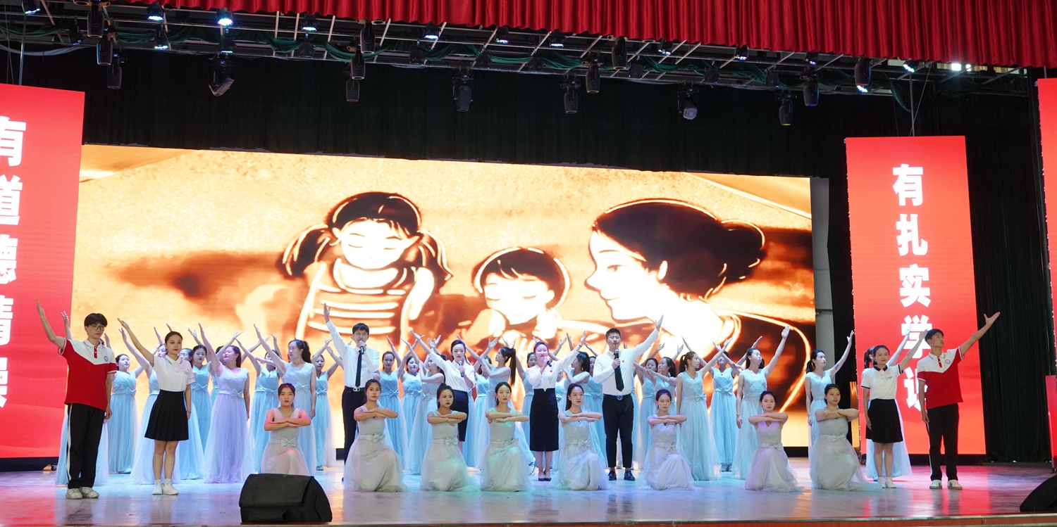 随后,教育与艺术学院师生朗诵了诗歌《最美人间九月天》。表彰大会在全体师生齐唱校歌《我们是胡杨的种子》中圆满结束。