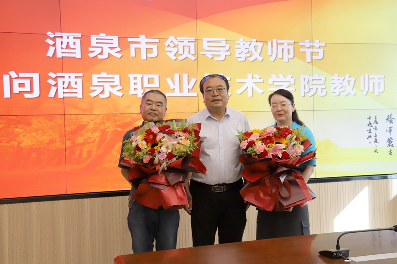 在第39个教师节即将来临之际,9月8日,市人大常委会副主任杜志学、市委教育工委委员、市教育局党组成员、副局长陶英江来校慰问优秀教师代表张玉秀和王彦军,并向广大教师和教育工作者致以节日祝贺和崇高敬意。学校党委委员、副校长施荣陪同慰问。