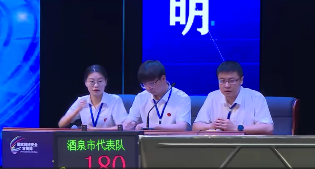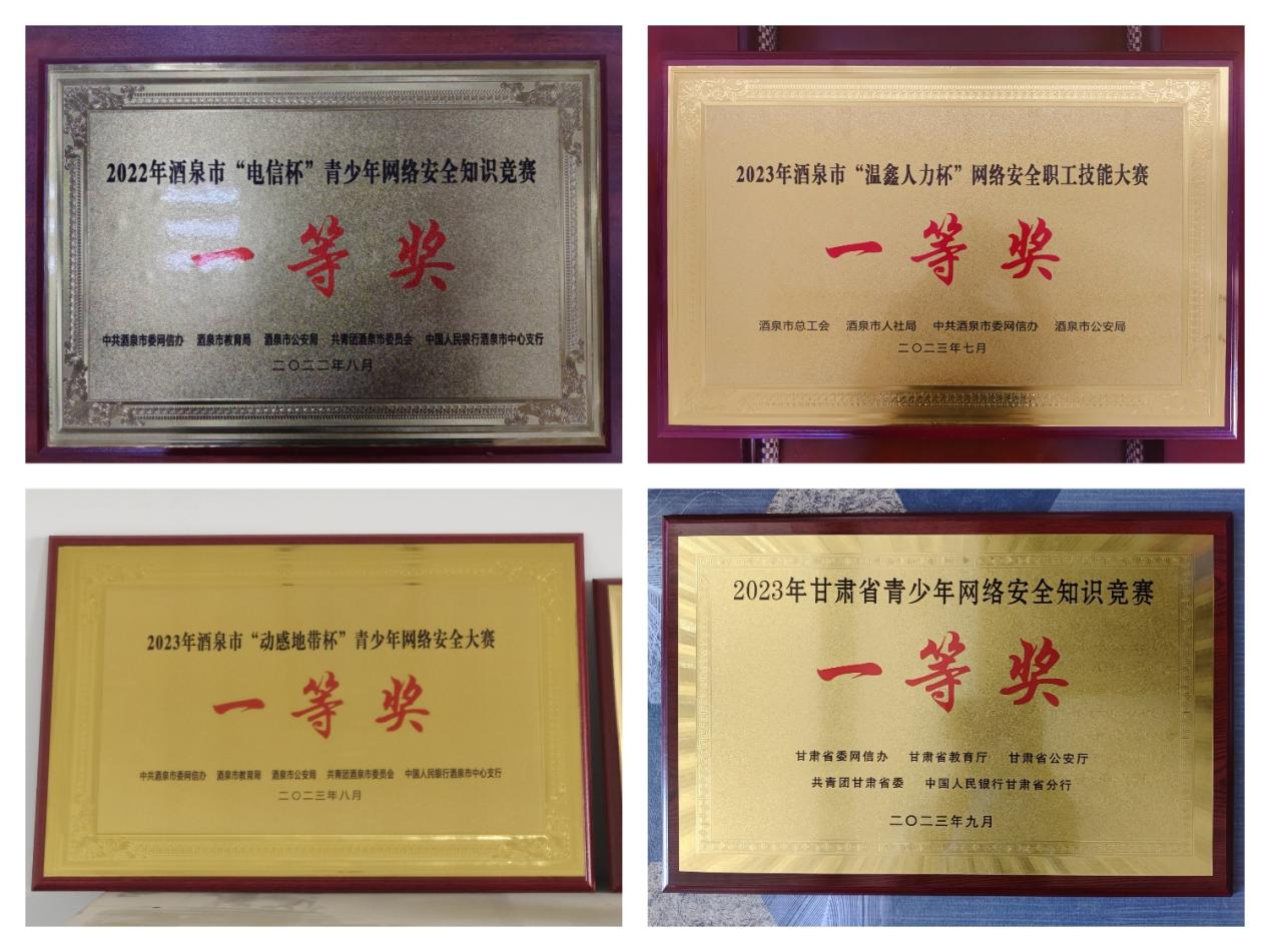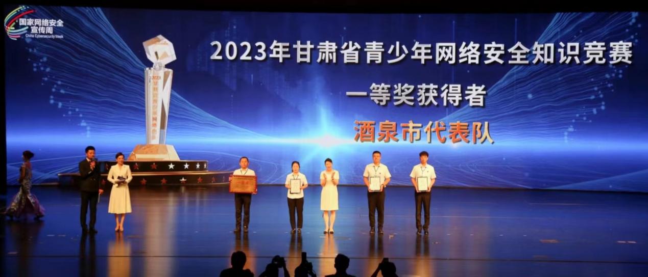 近日,在2023年甘肃省青少年网络安全知识竞赛中,由我校教师刘然、张吉强、孙浩组成的酒泉市代表队以其卓越的表现和扎实的专业知识,荣获一等奖,为学校赢得了荣誉。