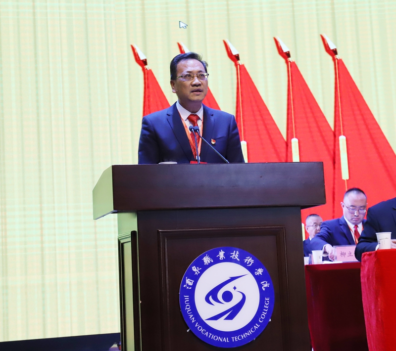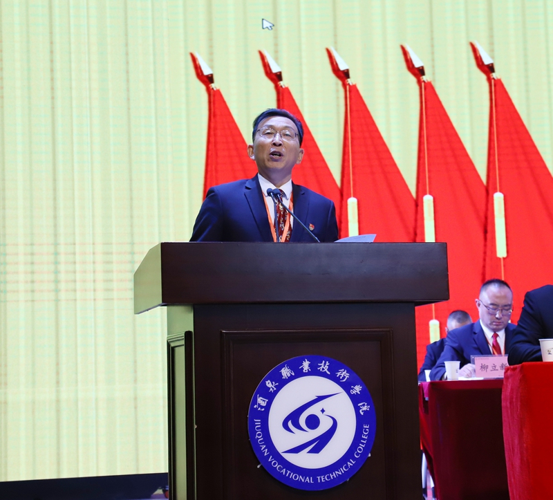 易志军同志代表中国共产党酒泉职业技术学院委员会作了题为《抢抓新机遇 担当新使命 为高质量建设酒泉职业技术大学努力奋斗》的工作报告。报告全面回顾了八年来学校取得的主要成就和基本经验,分析了当前面临的任务与挑战,明确了今后五年的发展思路、重点任务和主要举措。