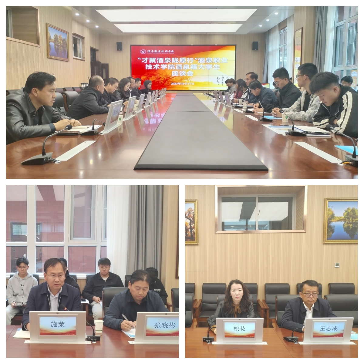 10月17日下午,酒泉市人力资源和社会保障局和我校共同举办了2023年酒泉市“才聚酒泉陇原行”第二季系列招聘活动,活动分为交流座谈和企业招聘两部分。