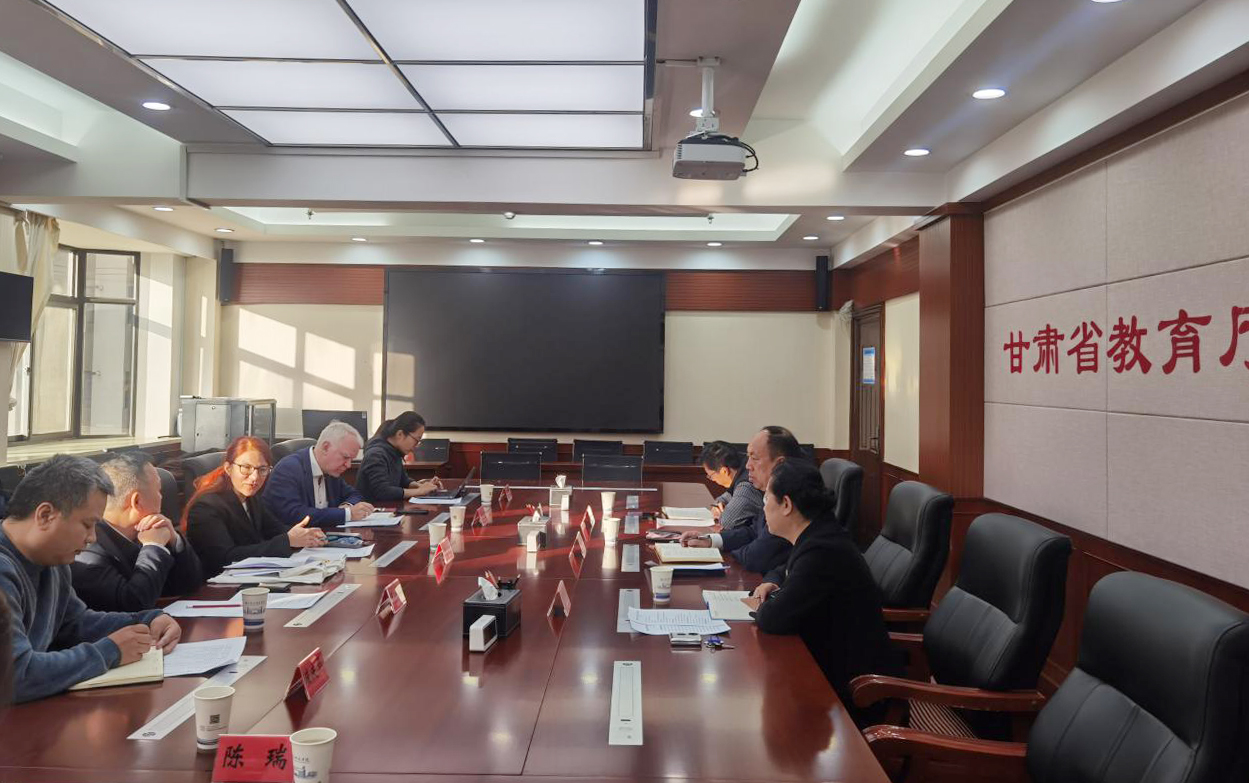 2023年11月29日,德国汉斯·赛德尔基金会东北亚处及中亚处处长维罗妮卡·艾因辛格(Veronika Einchinger)一行在酒泉职业技术学院党委委员、副校长王立智的陪同下前往甘肃省教育厅,商谈赛会与省教育厅进一步开展合作相关事宜。省教育厅二级巡视员温攀玺、国际合作与交流处处长高彩玲、职业教育与成人教育处副处长寇文捷出席会议,酒泉职业技术学院国际交流学院副院长陈瑞参加会议。