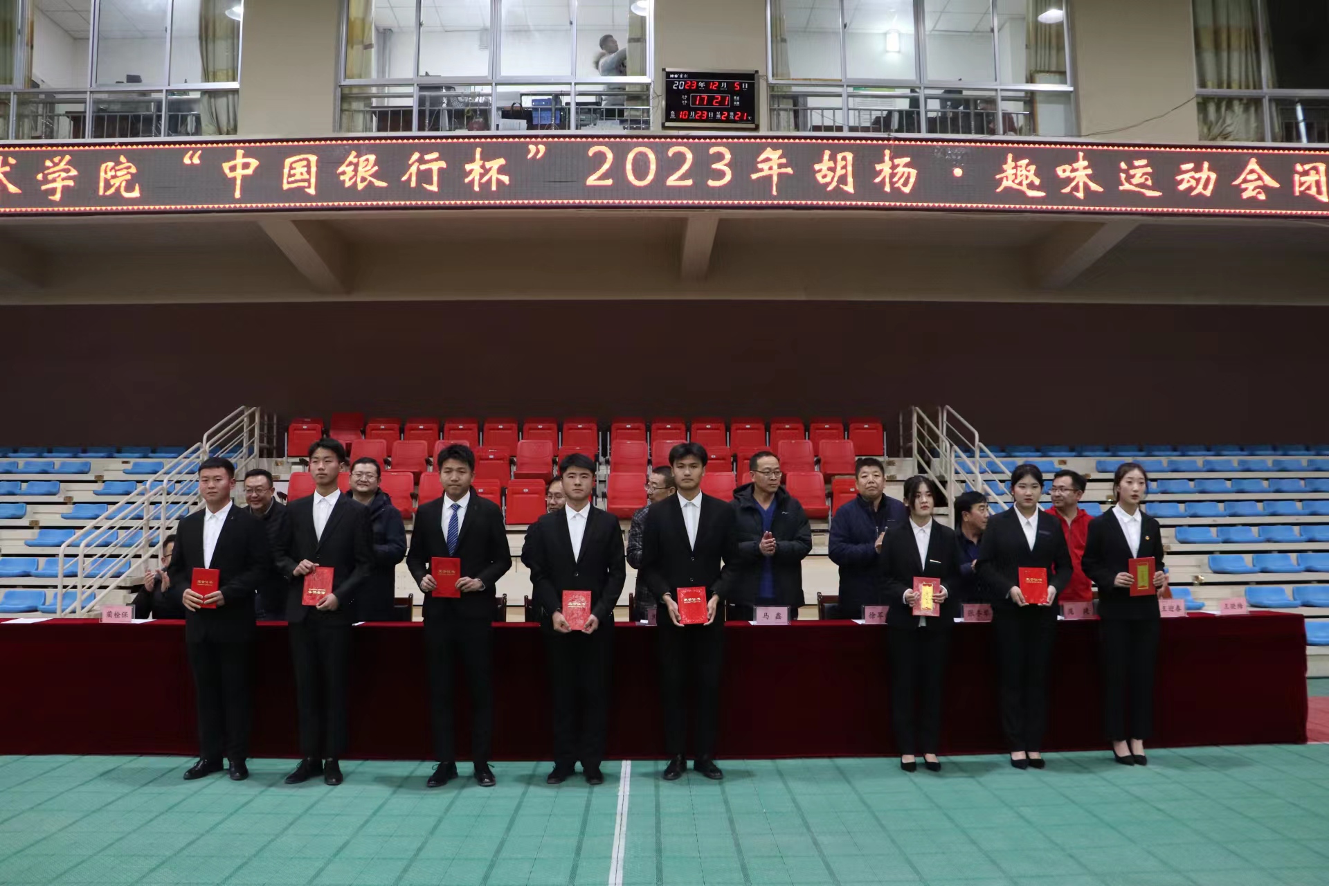 12月5日下午,学校 “中国银行杯”2023年胡杨·趣味运动会闭幕式在体育馆举行。党委委员、副校长施荣出席活动,相关职能部门及学院负责人、运动员代表及师生代表300余人参加闭幕式。