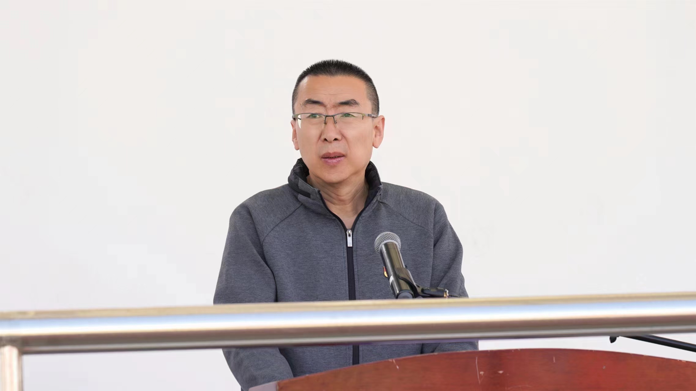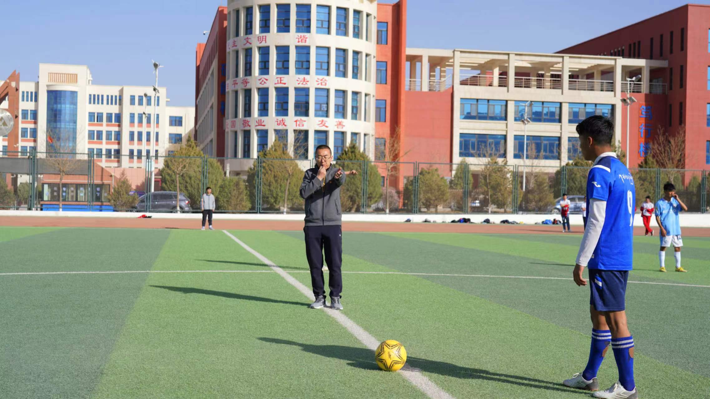 开幕式最后,刘全明宣布:“酒泉职业技术学院“胡杨•翼”第十二届春季球类运动会开幕”并为足球比赛揭幕战鸣开球哨。