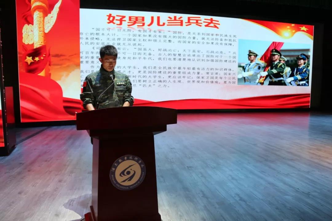 现役大学生士兵于靓雯是31654部队的一名话务员。她和学弟学妹们分享了当兵这几年的一些感悟:一是把青春奉献给军营,是人生的神圣选择。二是部队是个大熔炉,是锻炼自己的最好平台。三是军人是一种艰苦的职业,远不止是表面的英姿飒爽,更多的是背后的付出和坚守。她引用习总书记的话说道:现在,青春是用来奋斗的;将来,青春是用来回忆的。相信不久的将来,台下许多同学也会穿上这身光荣的军装,经过军旅生涯的历练,成长为军中将才,国之栋梁。