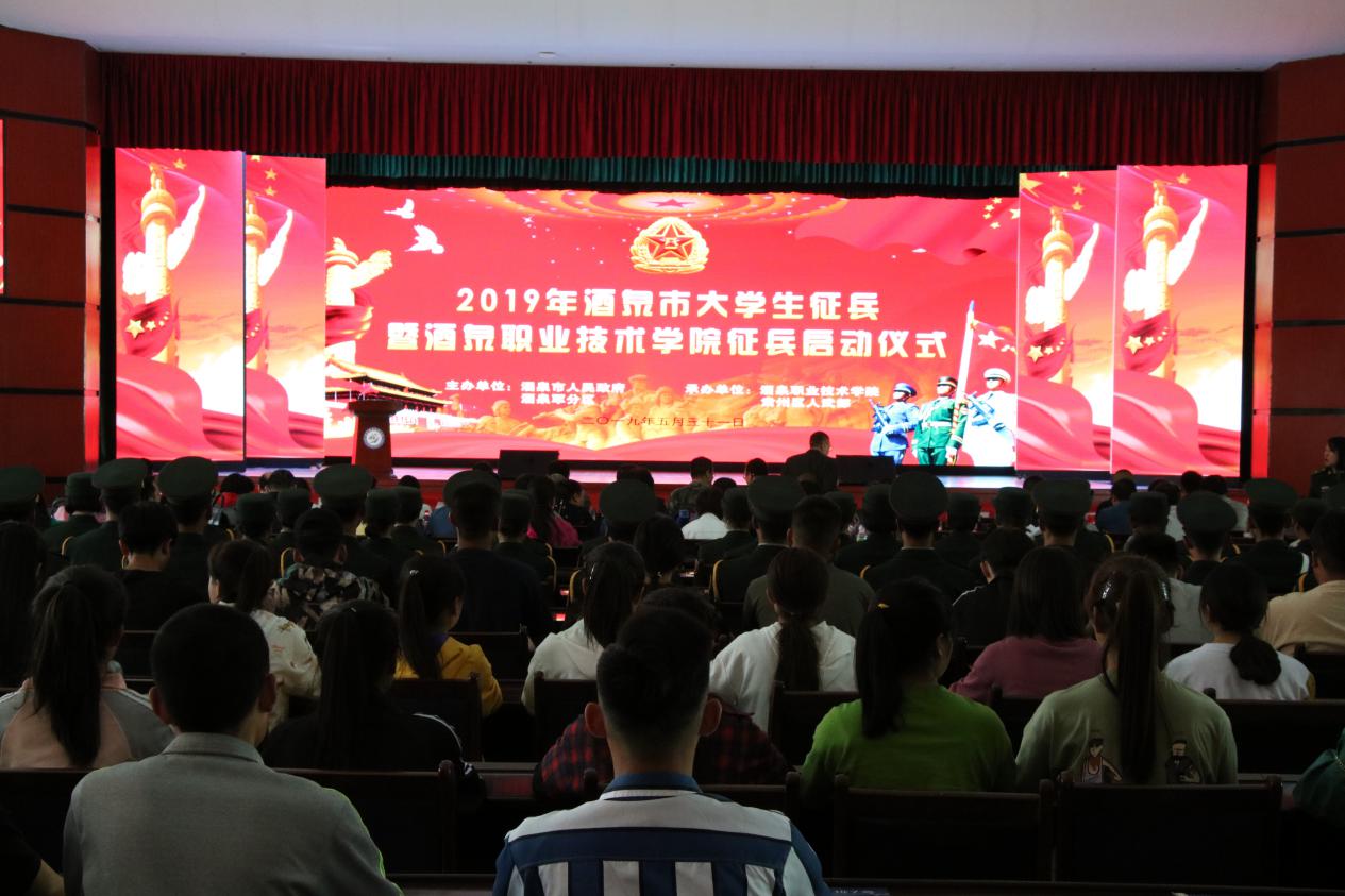 为把我市大学生征集工作做得更实、更好、更有成效,围绕省征办、省教育厅提出要稳定大学生征集比例、稳步提升毕业生和重点高校生比例的总体目标,5月31日下午,2019年酒泉市大学生征兵暨酒泉职业技术学院征兵启动仪式在我校胡杨文化活动中心隆重举行。酒泉职业技术学院党委委员、副校长薛仰全及酒泉军分区、肃州区人武部相关领导出席启动仪式,学校退役、现役、应征大学生代表和近500名同学参加了启动仪式。