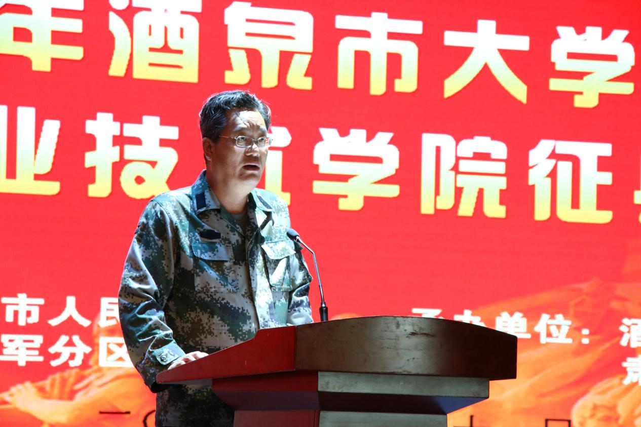酒泉军分区动员处处长孙清波在启动仪式上对广大同学发出号召:希望同学们要有携笔从戎的家国情怀,让青春不负时代担当;要有崇军尚武的澎湃激情,让青春助力强军梦想;要有参军报国的价值追求,让青春绽放军旅荣光。