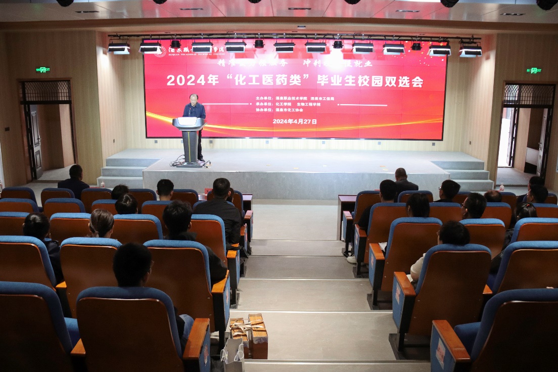 4月27日,酒泉职业技术学院2024年“化工医药类”毕业生校园双选会在学校胡杨文化活动中心成功举办。学校党委委员、副校长王长荣出席开幕式致辞,并在招聘会现场与多家参会企业进行交谈,开展访企拓岗活动。