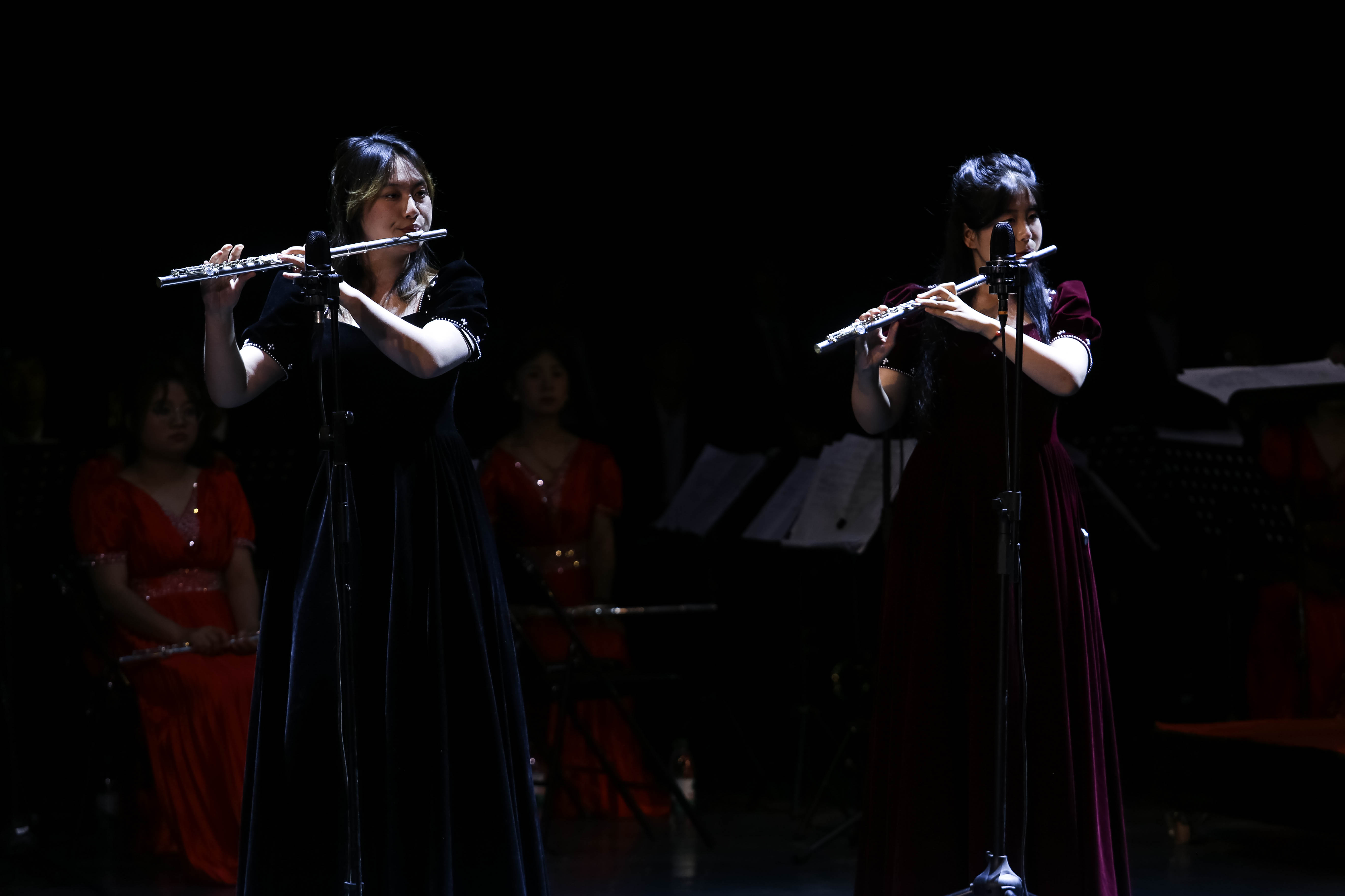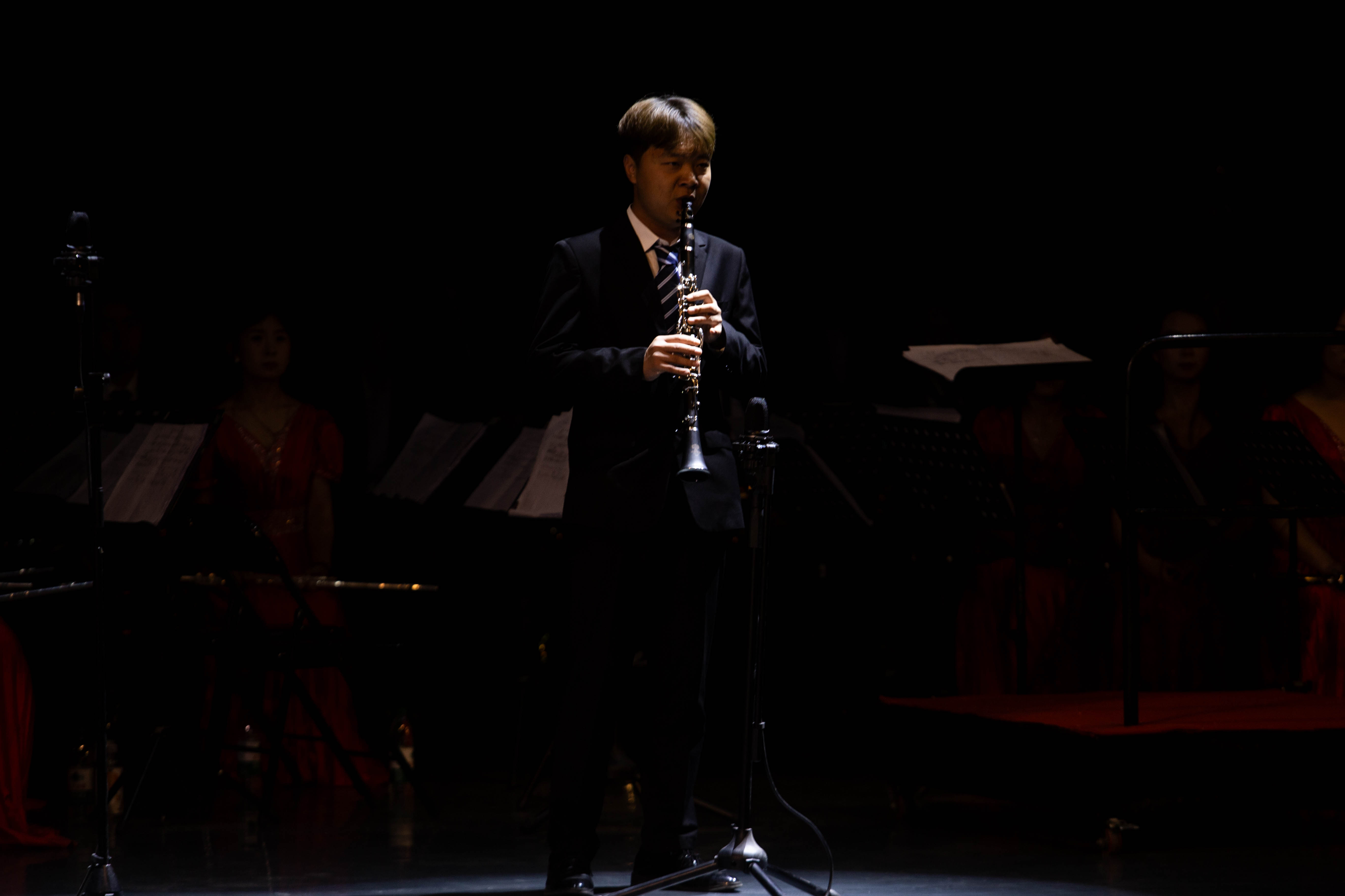 胡杨管乐团为现场师生演绎了组曲《我们走在祖国的大地上》《青春颂祖国》,男女生二重唱《我和我的祖国》《在希望的田野上》《长江之歌》《再过二十年我们来相会》,铜管五重奏《上海滩》,单簧管独奏《秋恋》,长笛二重奏《荷塘月色》,萨克斯独奏《西班牙斗牛士》,管乐合奏《阿里山的姑娘》《斯拉夫进行曲》《前进在新长征的路上》《勇往直前进行曲》等10余首经典音乐作品,为广大师生献上了一场别开生面的音乐盛宴。整场演出高潮迭起,观众掌声不断,现场气氛热烈浓厚。