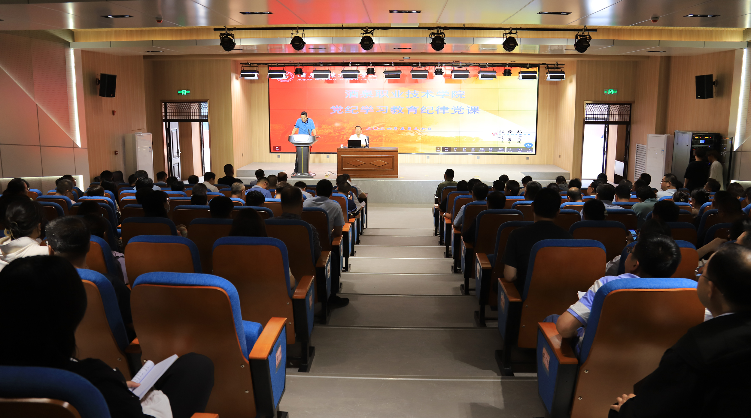 5月30日,党委书记、校长易志军教授在弘毅楼闻道厅讲授党纪学习教育纪律党课。校党委领导班子成员、机关党总支、酒泉卫校、教育与艺术学院全体党员,以及各二级学院党支部书记、专职副书记聆听了党课。党委委员、组织人事处处长茹立军主持。