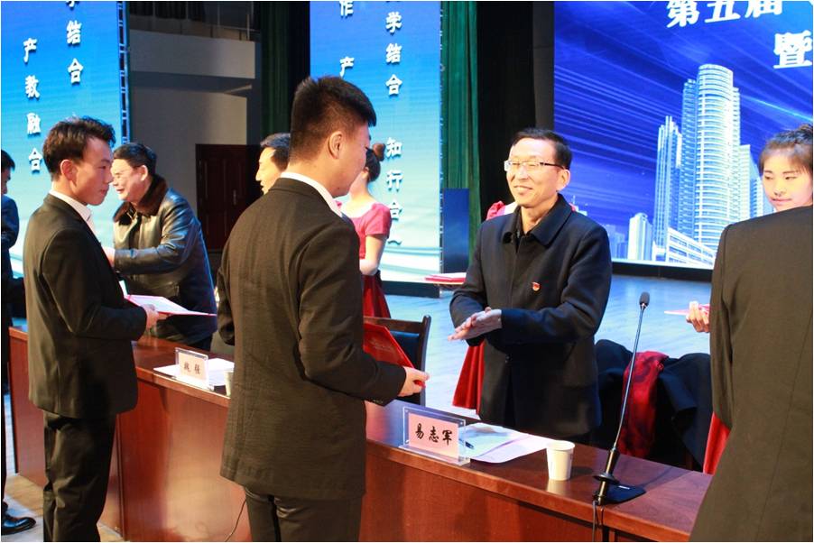 最后,学院党委书记、院长易志军发表重要讲话。易书记对获得资助和聘用的老师和学生表示了祝贺,对长期支持和关心校企合作的各界人士表示了感谢,对土木类专业联合开展的师徒结对“飞翔成才班”人才培养模式给予了高度的认可,为2019年的校企合作指明了前行的方向。