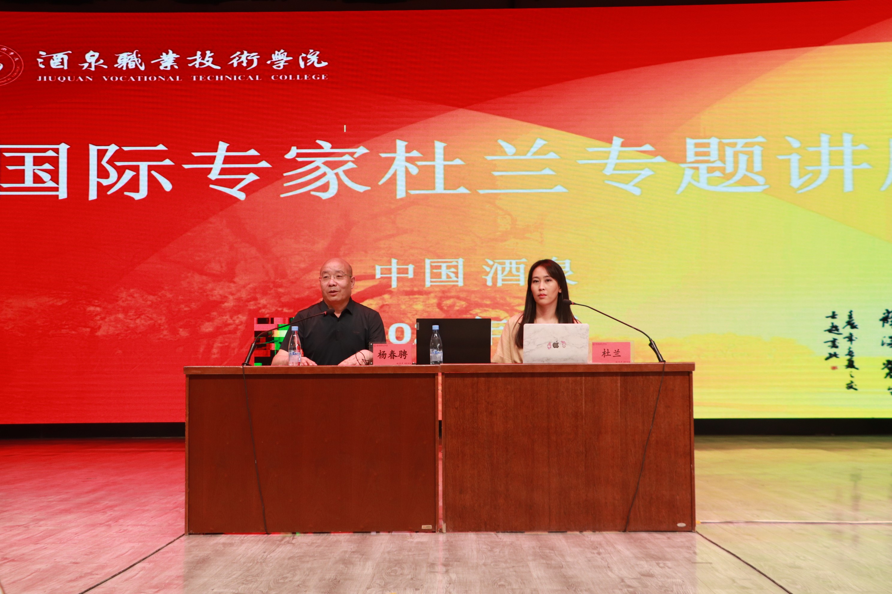 为践行国家“一带一路”战略,提升学校国际化水平,创新国际化人才培养模式,2024年6月15日上午,酒泉职业技术学院外国专家流动工作站特聘驻站专家、蒙古国自由作家杜兰女士应邀来校进行学术交流,并就《做“一带一路”与“草原之路”对接的使者》一题展开了专题讲座。讲座在学校胡杨文化活动中心成功举办,学校党委委员、副校长王立智教授、酒泉卫校副校长孙俊峰教授、学校国际交流处、学工部、团委、马克思主义学院、国际交流学院负责人、各二级学院分管学生工作副院长、团委书记及学生代表等近540余人参加了讲座。讲座由国际交流学院院长杨春骋副教授主持。